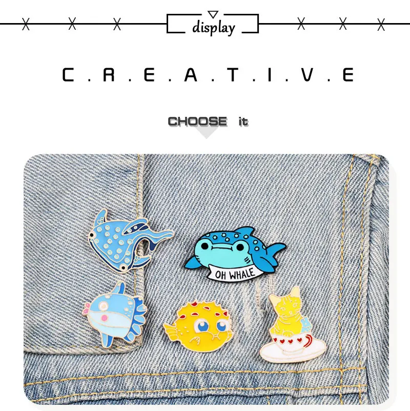 Милая мультяшная брошь в виде животных, морская рыба, Кит, Акула, чашка-пуховик, кошка, твердая эмаль, булавка на лацкане, броши для женщин, значки, пинбэк