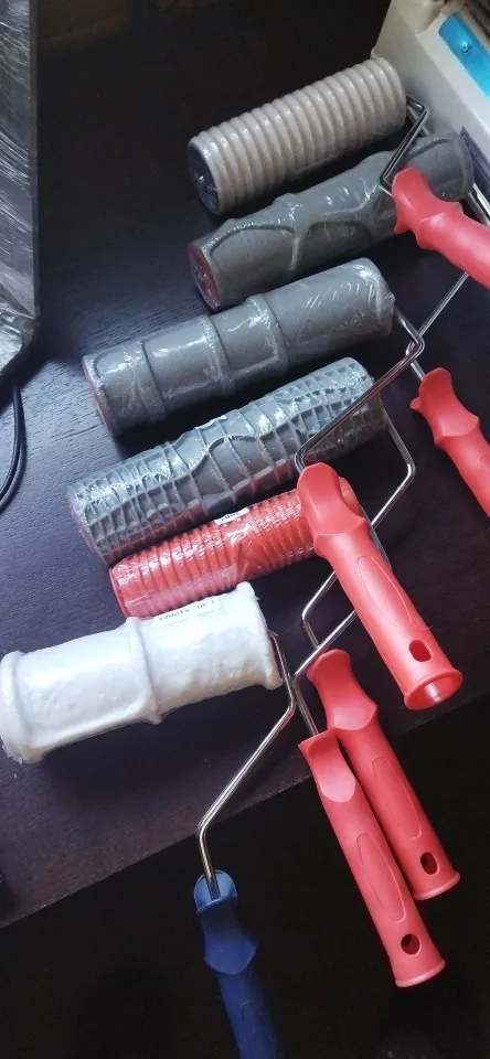 2. Тиснение цилиндра для тиснения стен, после того, как стена высохнет, используйте наждачную бумагу слегка полировать.3. Используйте ролик для волос или губчатый валик для окраски металлической краски, и цвет будет покрывать весь эффект тиснения.