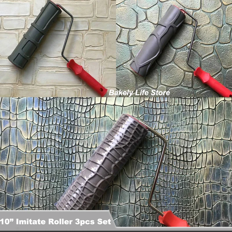 Комплект из 3 предметов, 10 "узор Краски ролик охраны окружающей среды штамп декоративная, цилиндрическая с имитацией кожи инструменты для создания текстуры