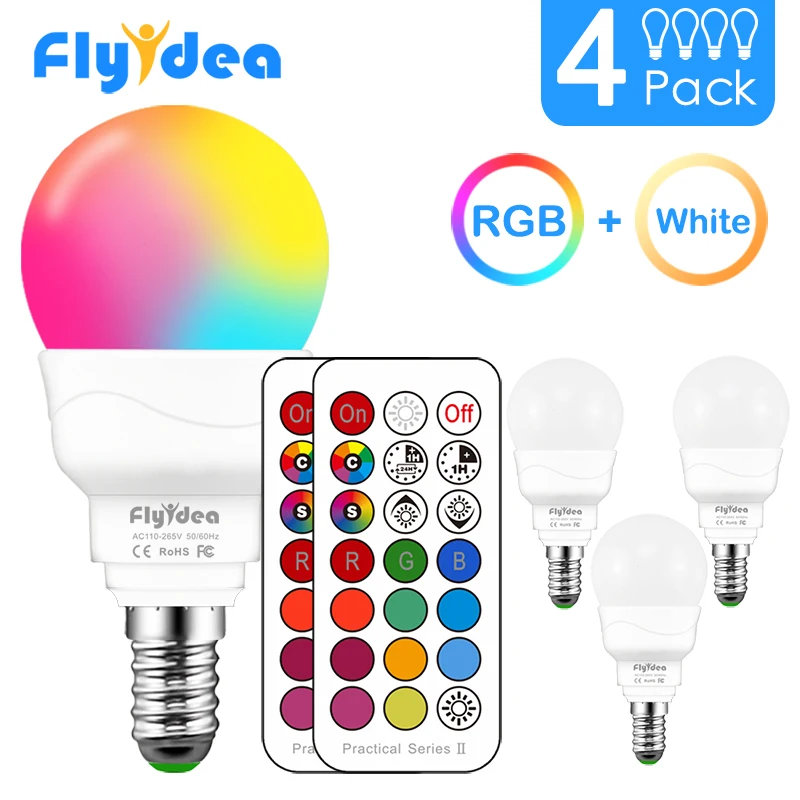 Умная лампа E14, светодиодная лампа RGBW, 21key, инфракрасный контроллер, многоцветный, с регулируемой яркостью, меняющий цвет, светодиодный светильник, AC110V220V