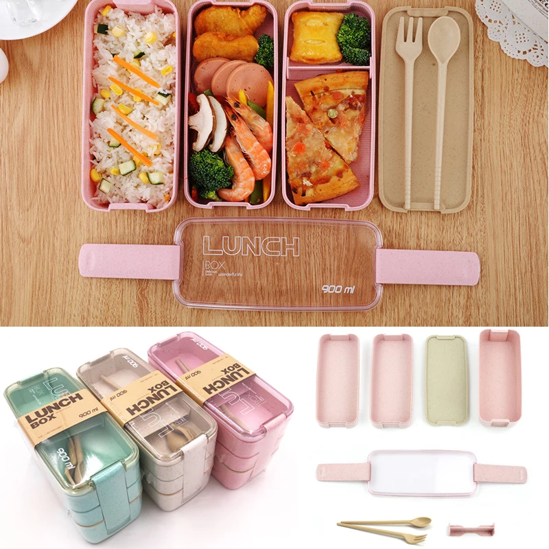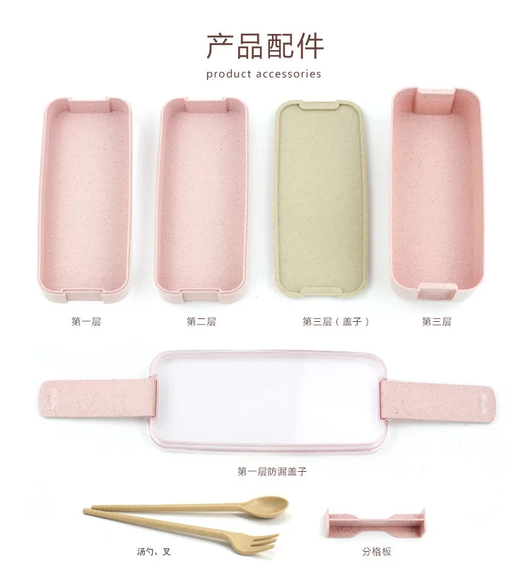 Здоровый материал Ланч-бокс 3 слоя пшеничной соломы Bento коробки м...