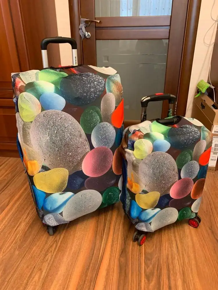 Чехол понравился. Соответствует описанию. подошел на чемодан h 55. Спасибо за яркую интересную вещь.