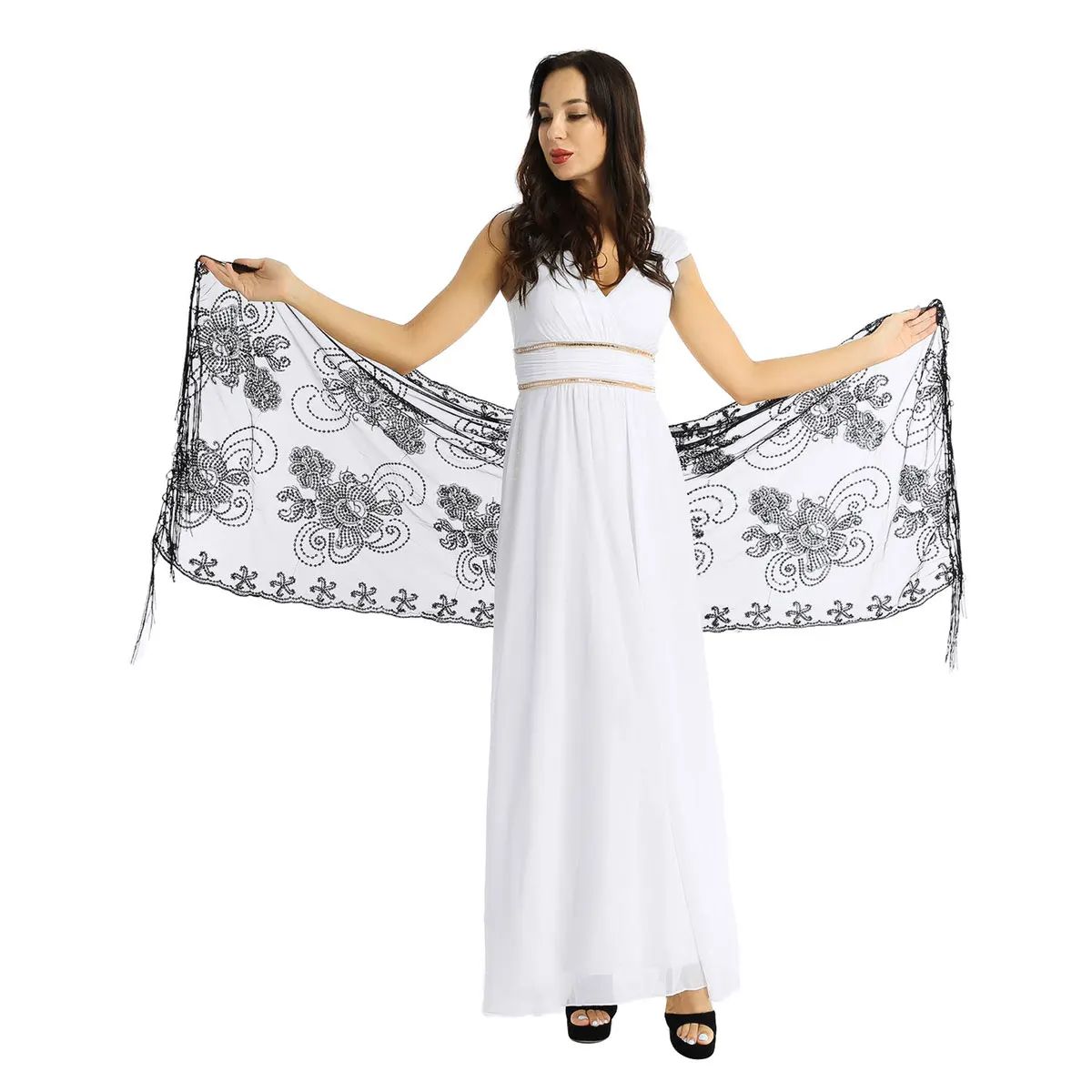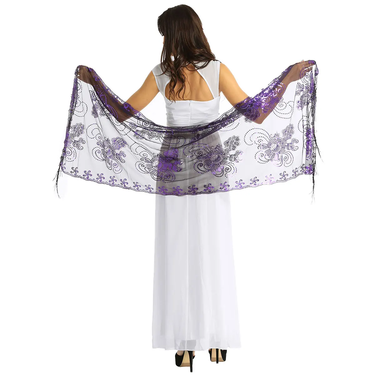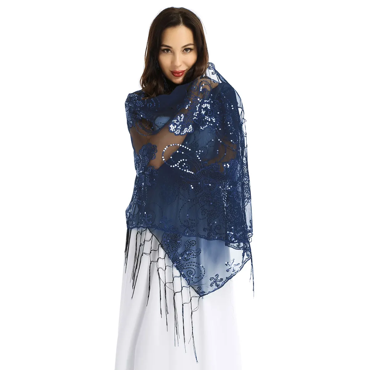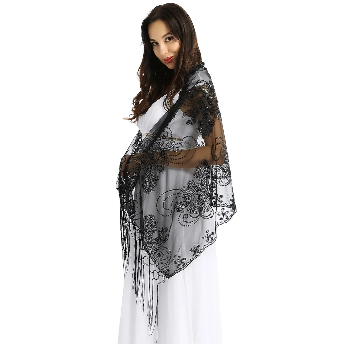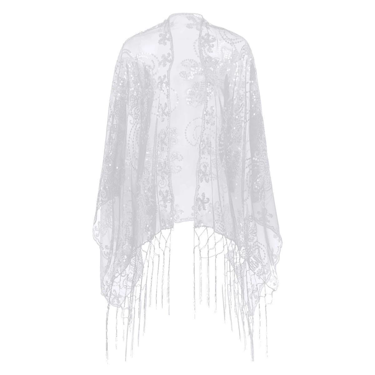 Женская элегантная шаль 160x60 см, винтажный Блестящий шарф 1920s, сетчатая Свадебная накидка с блестками, вечернее платье с бахромой, шаль, накидка