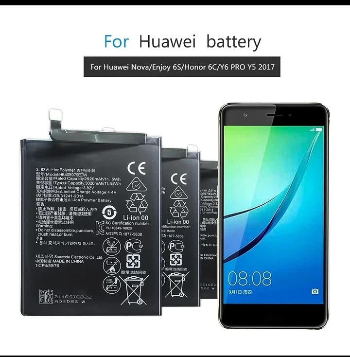 Модели батарей Подходит для мобильный телефон HB3742A0EZC + Для Huawei Enjoy 5S HB405979ECW Для Huawei Enjoy 6S HB396689ECW/HB406689ECW Для Huawei Enjoy 7 plus HB366481ECW Для Huawei Enjoy 7S/Enjoy 8/Enjoy 8E HB366481ECW Для Huawei honor 5C/honor 7C/honor 7A Pro HB405979ECW Для Huawei Honor 6C/Honor 6A HB405979ECW Для Huawei honor 7A/honor 7S HB366481ECW Для Huawei honor 8 / honor 8 lite HB376994ECW Для Huawei honor 8 Pro HB405979ECW Для Huawei Honor 8A/Honor 8S HB386589ECW Для Huawei Honor 8X HB366481ECW Для Huawei honor 9 Lite HB386280ECW Для Huawei Honor 9 STF-L09 STF-AL10 HB356687ECW Для Huawei Honor 9i/honor 7X HB366179ECW Для Huawei Nova 2 HB386589ECW Для Huawei Nova 3/Nova 4 HB366481ECW Для Huawei Nova Lite / Nova 3E HB405979ECW Для Huawei Nova/Nova Smart HB386280ECW Для Huawei P10 HB366481ECW Для Huawei P10 Lite / P20 Lite HB386589ECW Для Huawei P10 Plus HB3447A9EBW Для Huawei P8 HB3742A0EZC + Для Huawei P8 Lite HB366481ECW Для Huawei P8 lite 2017 (не для P8 lite) HB405979ECW Для Huawei P9 Lite mini HB366481ECW Для Huawei P9/P9 Lite/P9 lite 2017 HB405979ECW Для Huawei Y5 2017/Y5 Lite/Y5 Prime 2018/Y5 2019 HB405979ECW Для Huawei Y6 2017/Y6 Pro 2017 HB366481ECW Для Huawei Y6 II HB526379EBC Для Huawei Y6 Pro