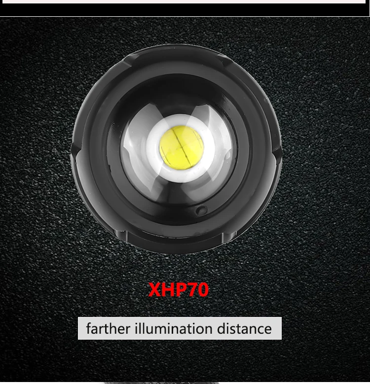 XHP70.28000LM 3 mode USB use 2*26650 OR 2*18650 battery 4th battery prompt