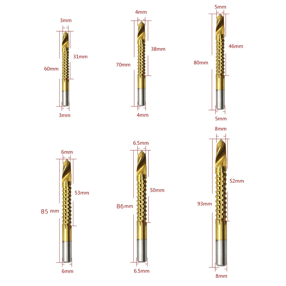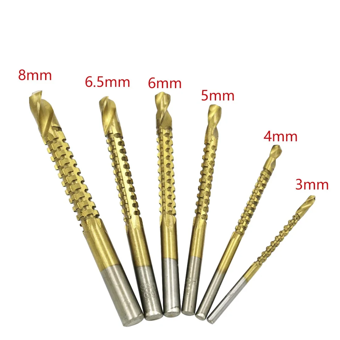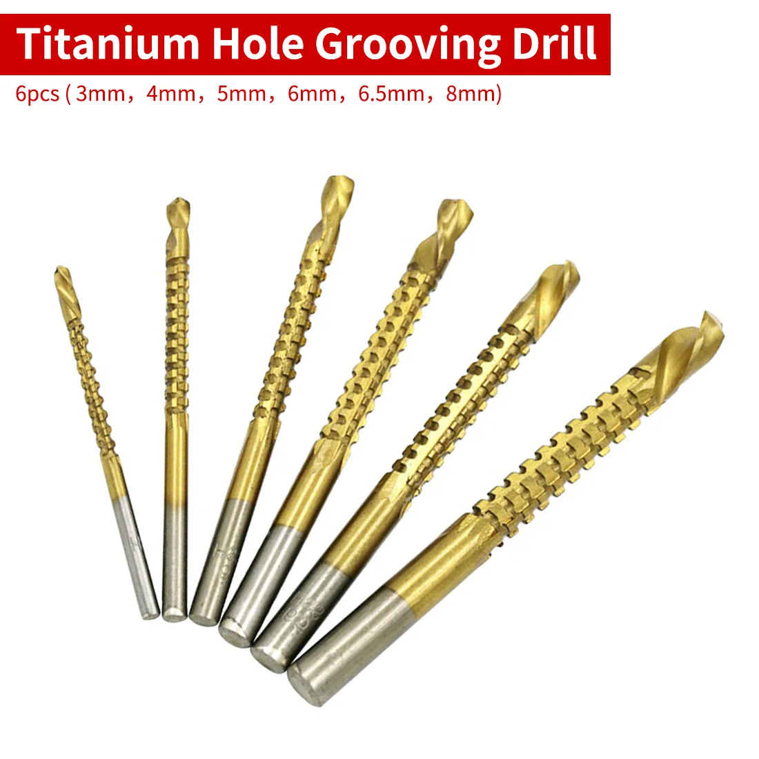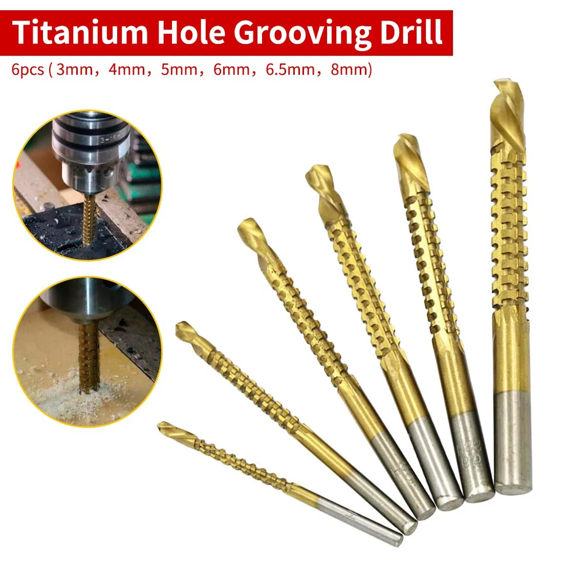Пила Плотницкий инструмент 3 мм 4 мм 5 мм 6 мм 6,5 мм 8 мм 6 шт. кольцевая машина для нарезания канавок в дрель BitTitanium покрытием HSS Сверло для Пластик древесины деревообрабатывающий инструмент