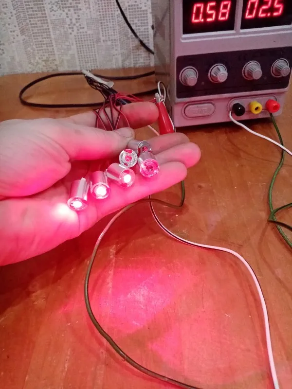 Работает, светит ярко, немного греется. Напряжение немного не соответствуют спецификации (при номинальном токе). Свет неприятный, сильно режет глаза.
