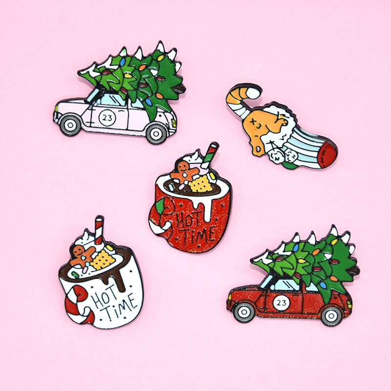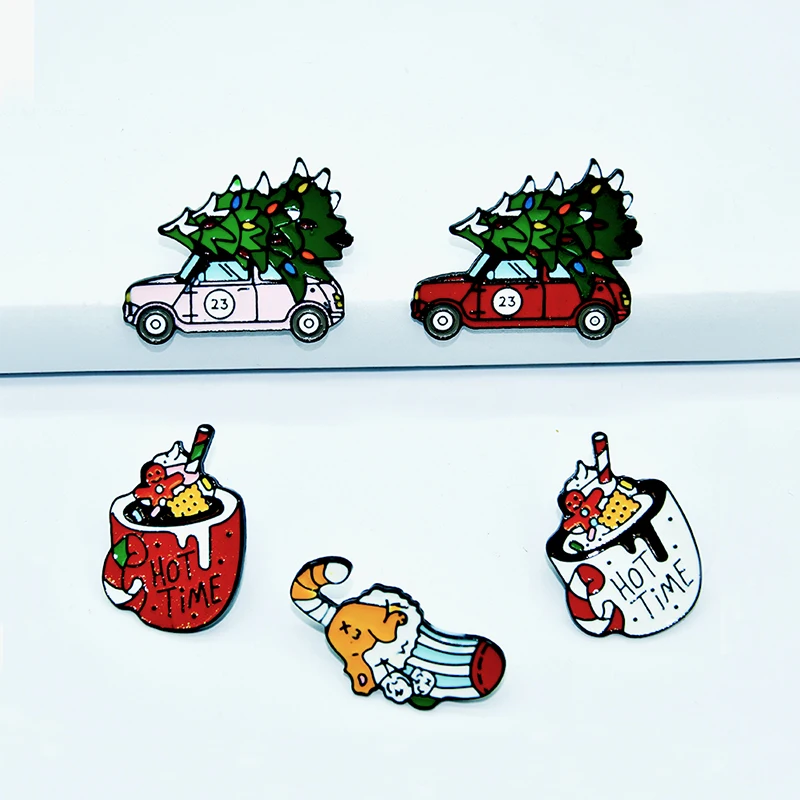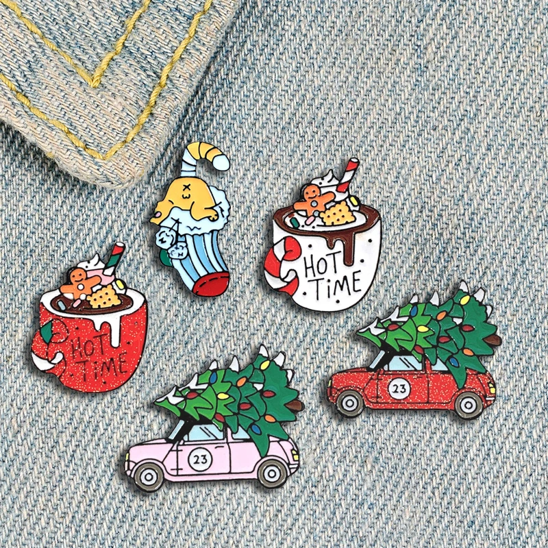 Рождественская фантазия Горячая кококо чашка розовый автомобиль переноска Рождественская елка носки значок булавка модная семья детей Ювелирные изделия Подарки