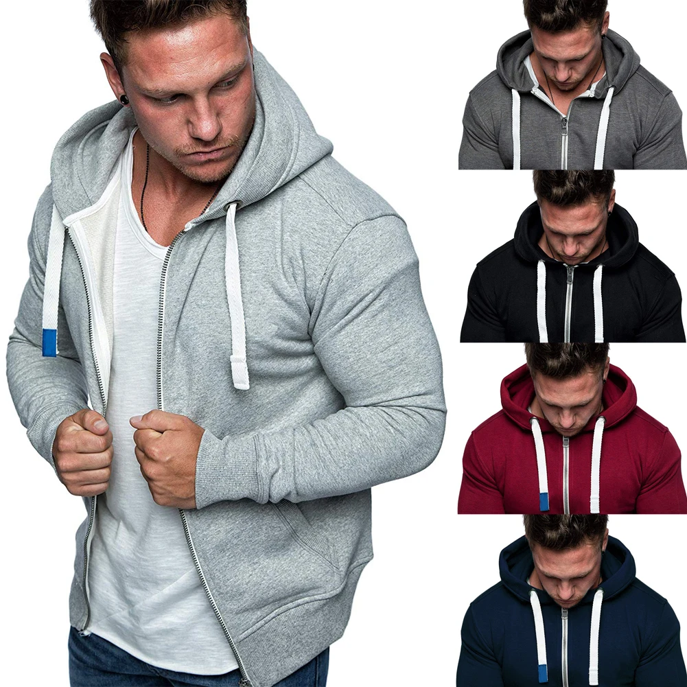 Свитшот мужской с капюшоном, хлопковый пуловер на молнии, верхняя однотонная толстовка, флисовая уличная одежда, худи, свитшот, на осень