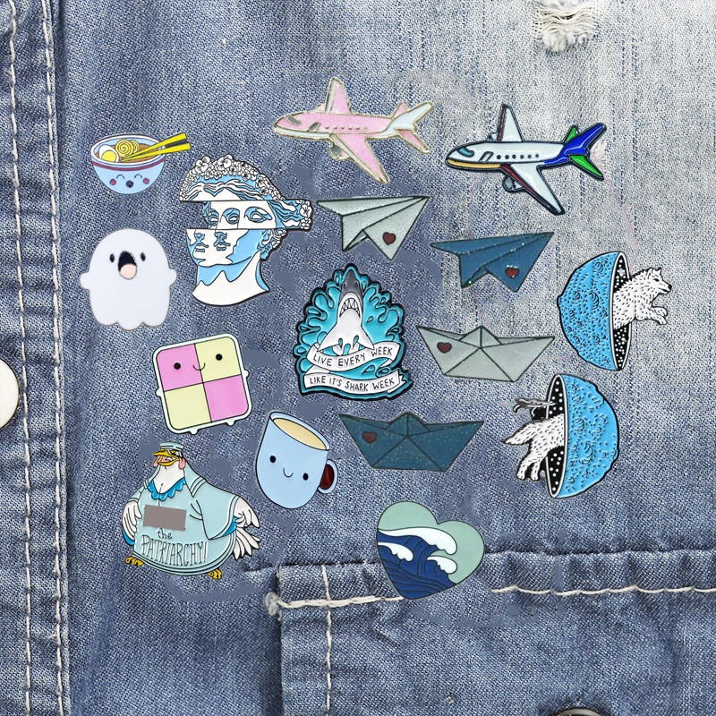 Синий самолет парусное яйцо лапша чаша Акула волк гриб любовь серфинг петух кофейная чашка металлическая эмалированная заколка лацкан свитер ювелирные изделия