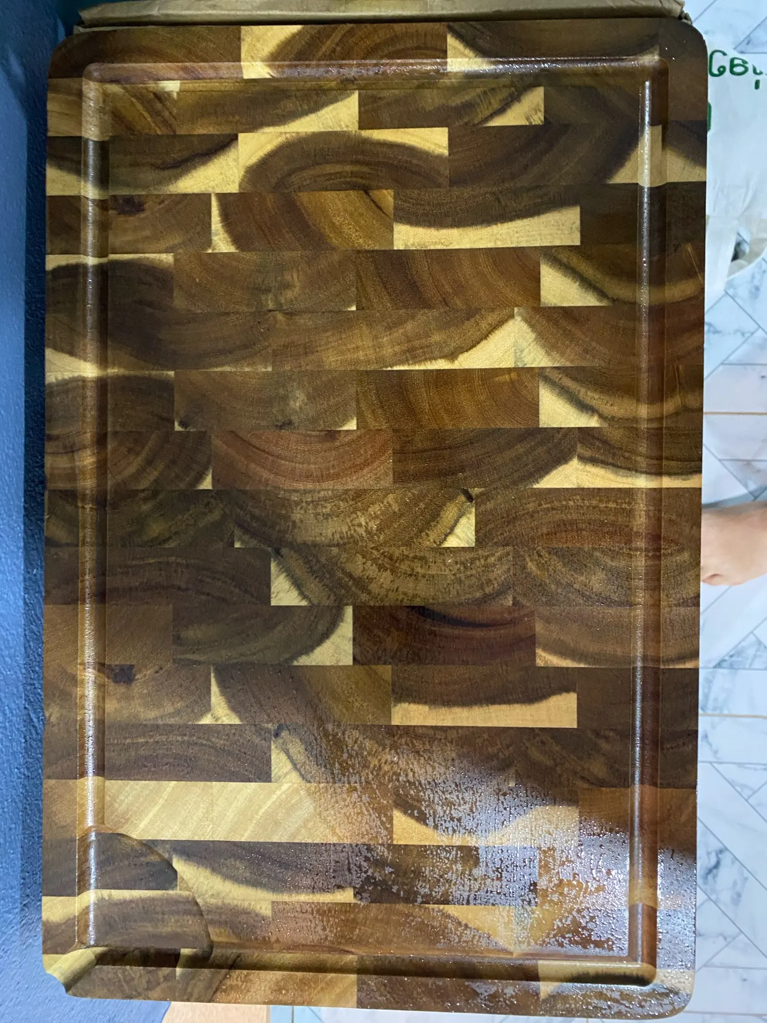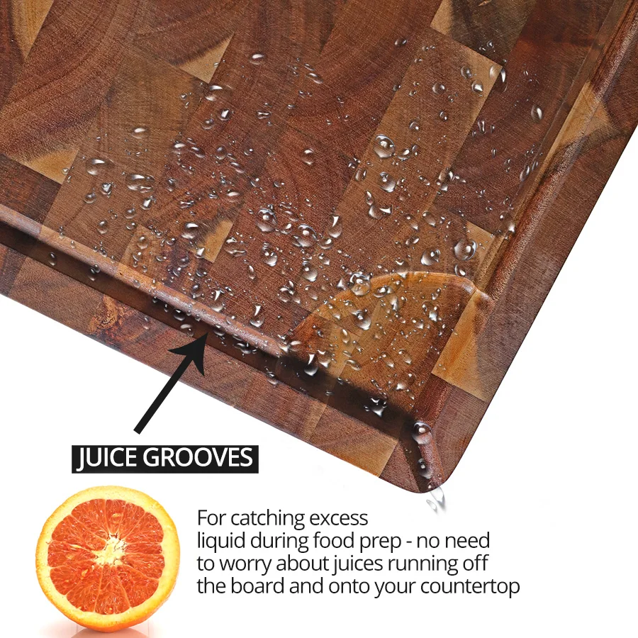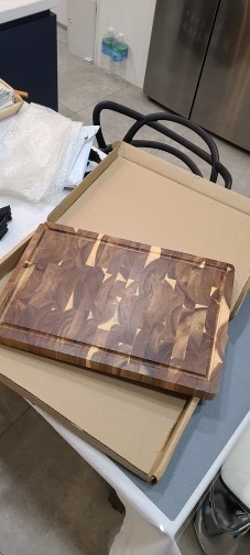Это очень хорошая разделочная доска. Он плотный и очень хорошо сделан. Отделка и превосходное исполнение.