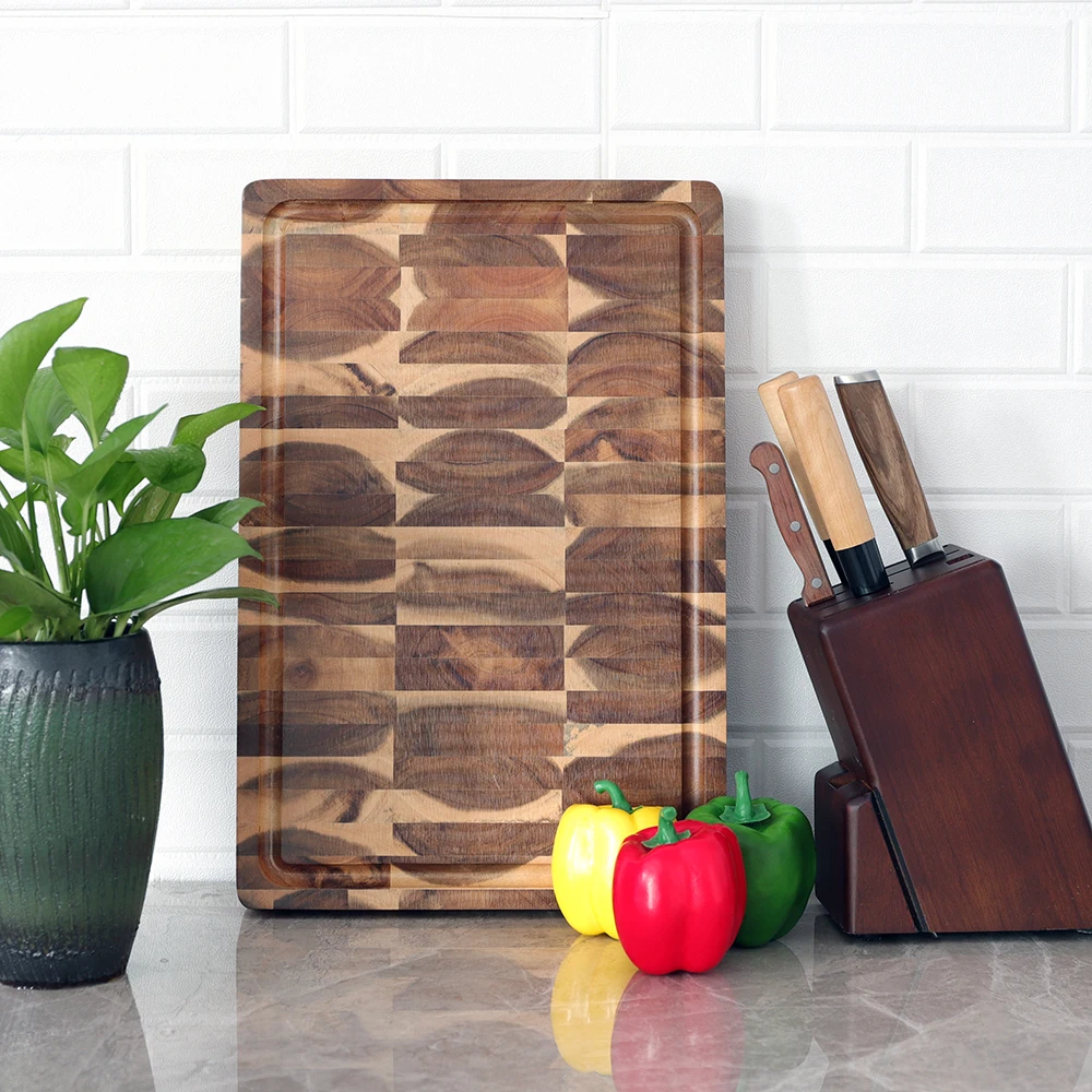 Очень большая разделочная доска, прямоугольный разделочный брусок мясника, кухонные разделочные доски, дерево акации, 18x12x1,4 дюймов