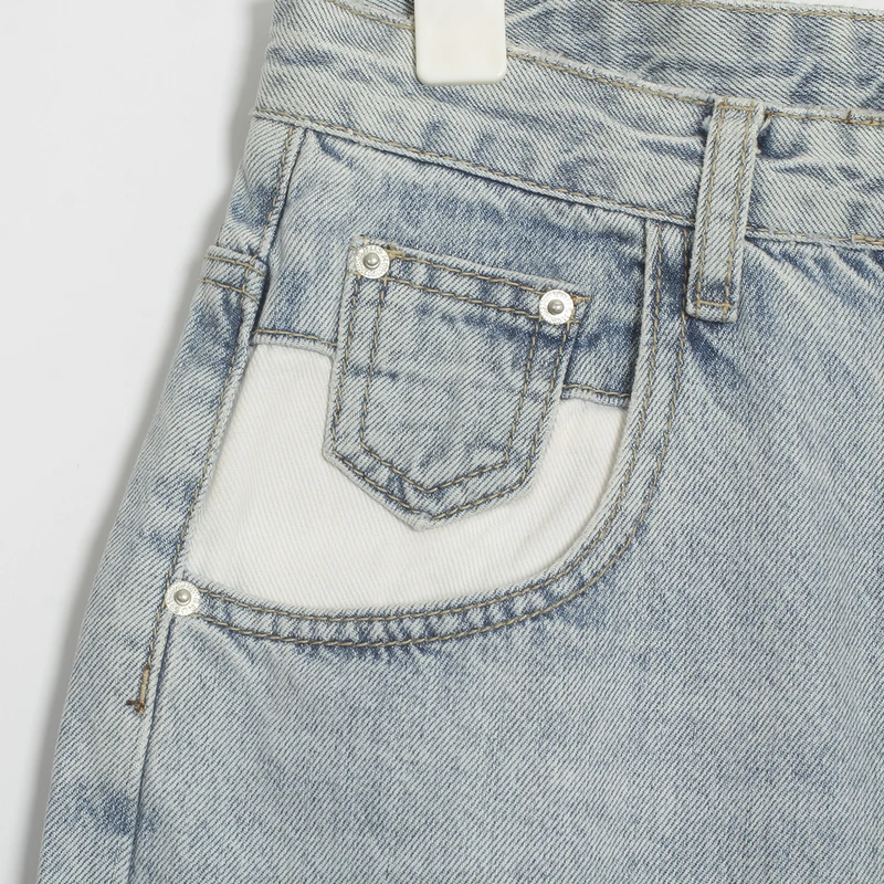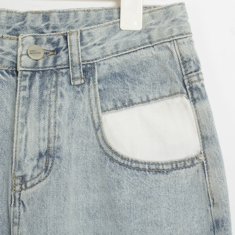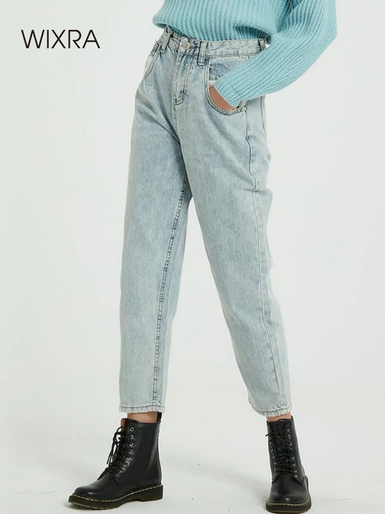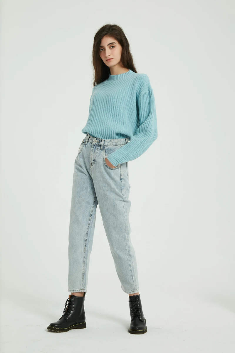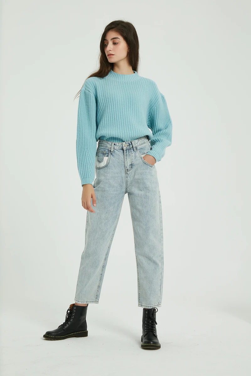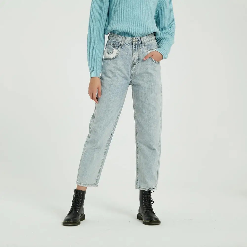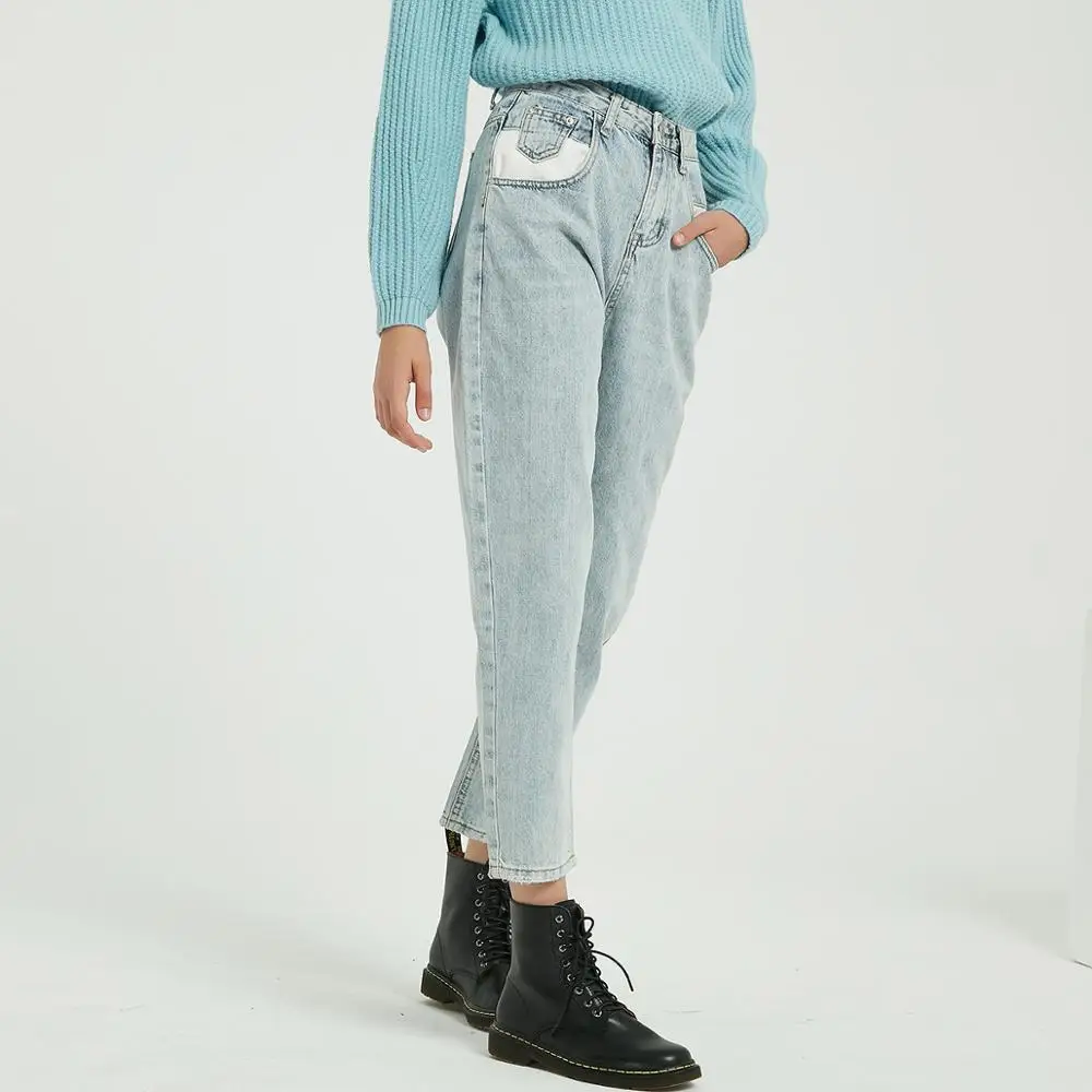Джинсы женские весенне-осенние однотонные с высокой талией и карманами