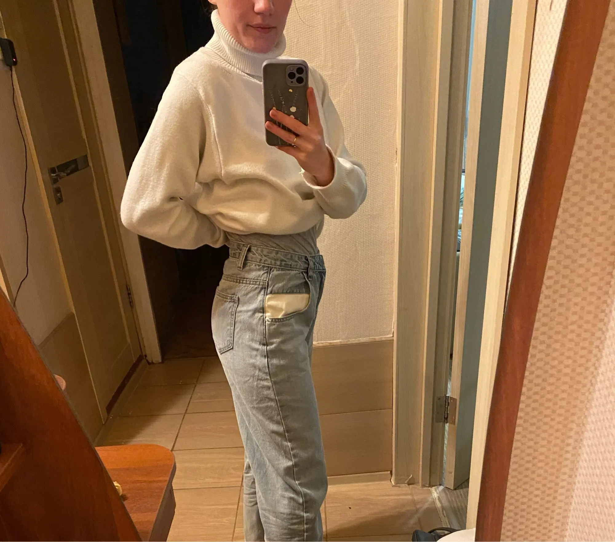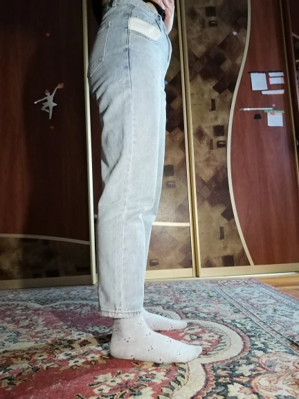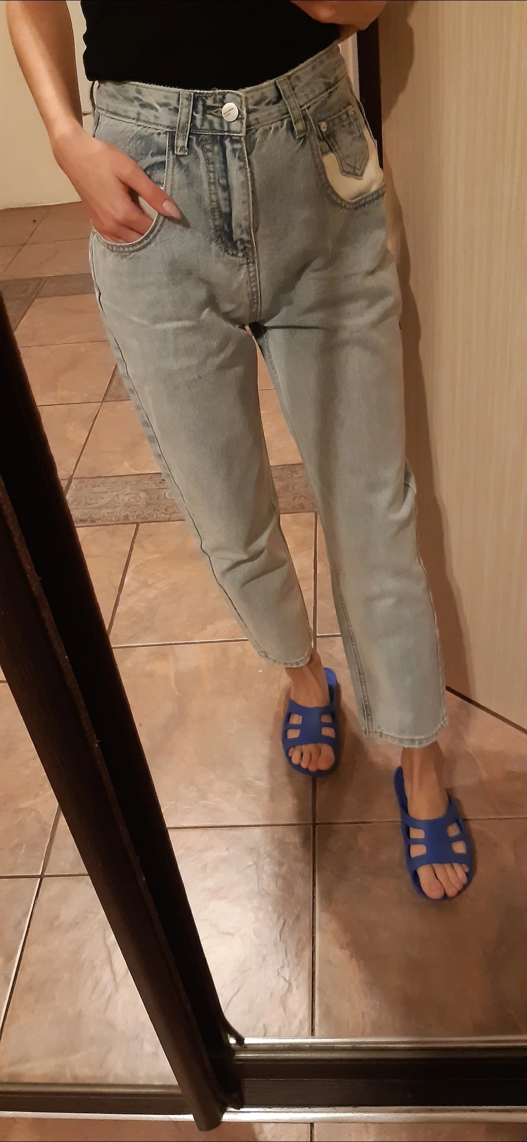 Лучшие джинсы, которые у меня были, очень удобные! Талия 70, бёдра 95, рост 170. Чуть выше щиколотки.