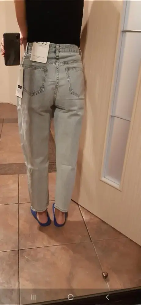 Первый джинсы с али и сразу восторг! Джинса плотная, качественная. Карманы смотрятся очень интесно. На параметры от 64 и об 93 взяла s, в талии хорошо,а в бедрах не очень легко надеваются,но при носке ничего не мешает. Брала 11.11 приши 27.11 в Казань. Вообщем очень довольна, ношу почти каждый день.