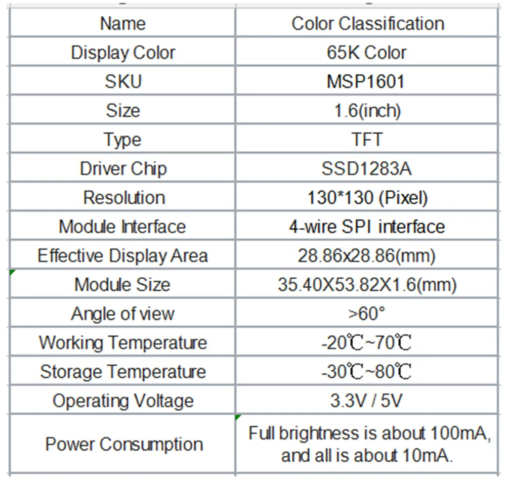 Модуль ЖК-дисплея 1,6 дюйма OLED SPI с последовательным интерфейсом TFT, 130*130, модуль для перехода к Arduino OLED, модуль дисплея, Прямая поставка