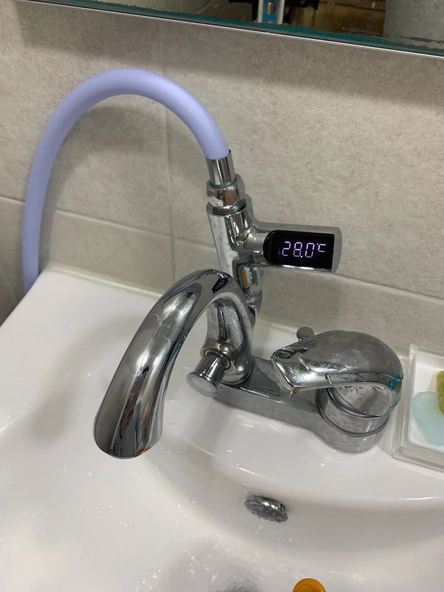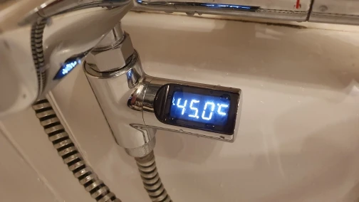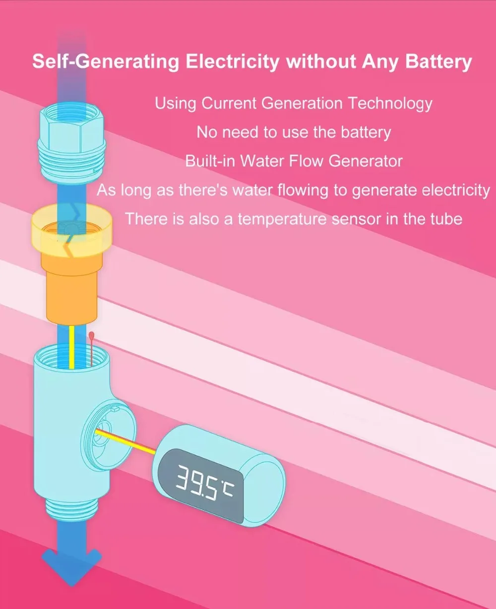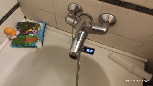 Дисплей может включать и выключать согласно воде, проходящей через, и может быстро обновлять температуру воды. Не нужен аккумулятор и работает безупречно