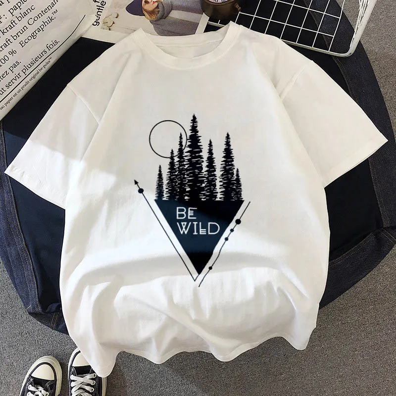 Женская футболка с круглым вырезом, белая футболка с принтом темного леса, с надписью Вселенная Вера, Харадзюку, 2019