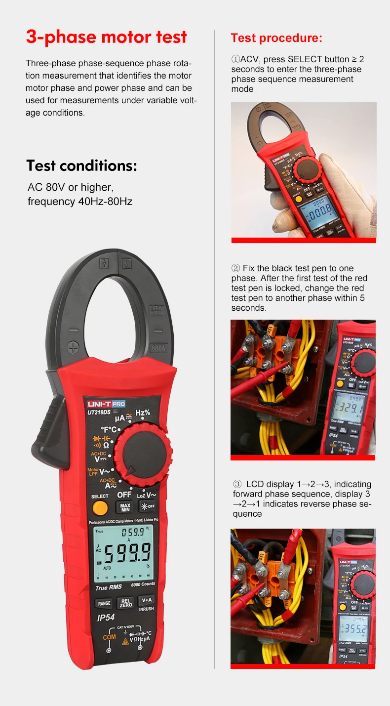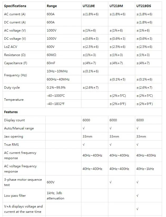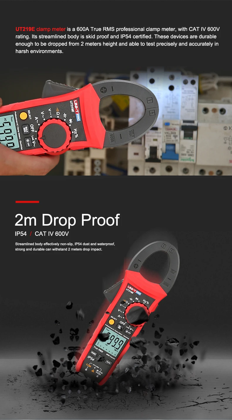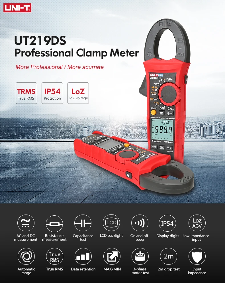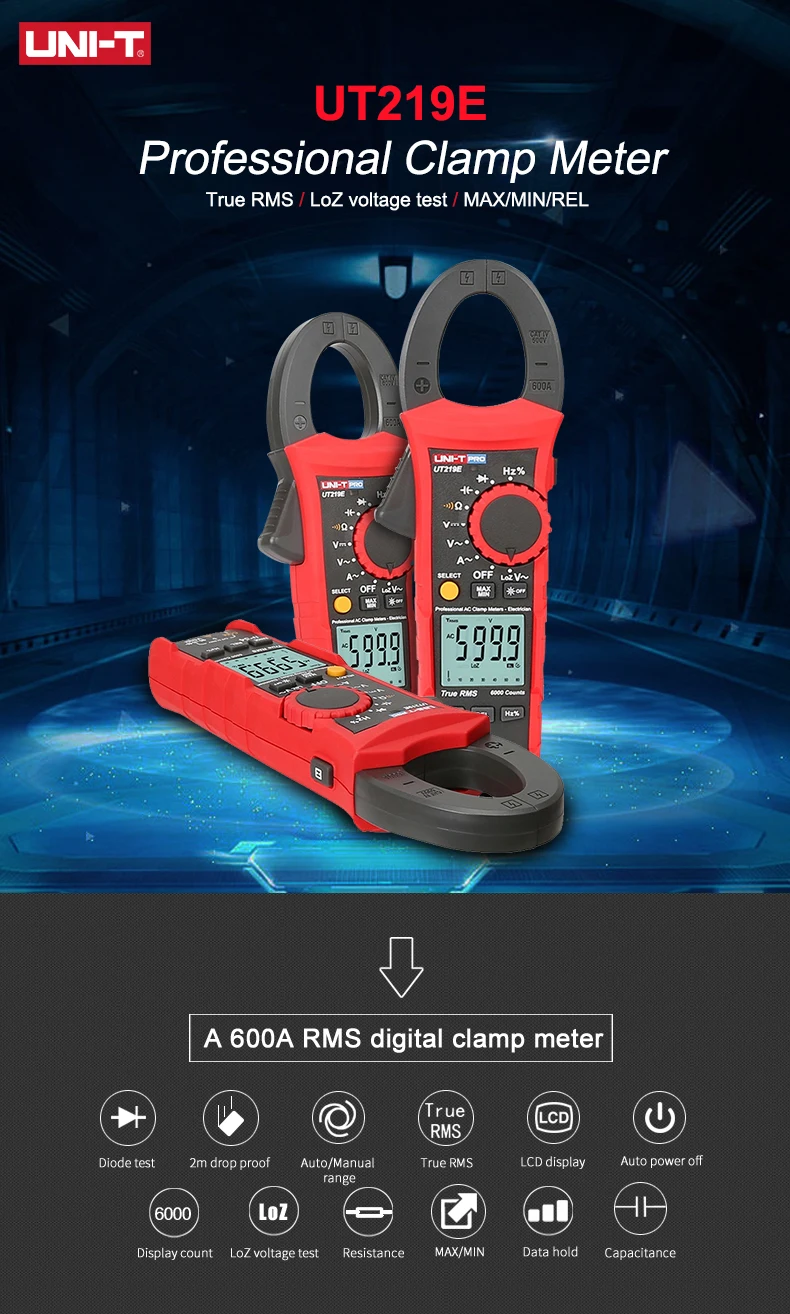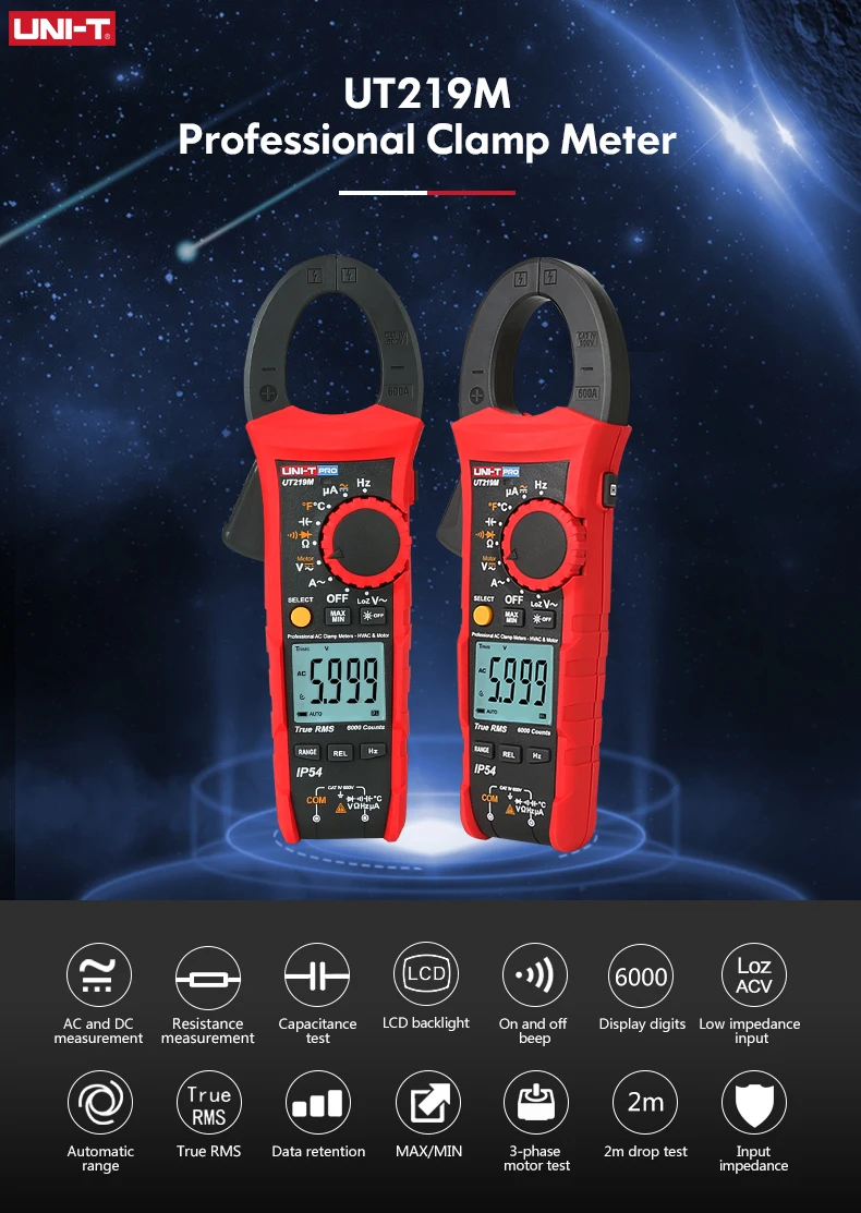 UNI-T профессиональные цифровые клещи, 1000 В переменного тока, постоянного тока, серия UT219, истинное среднеквадратичное значение, Автоматическое отключение питания, 3-фазный тест последовательности двигателя