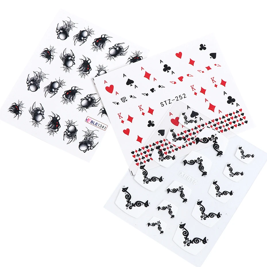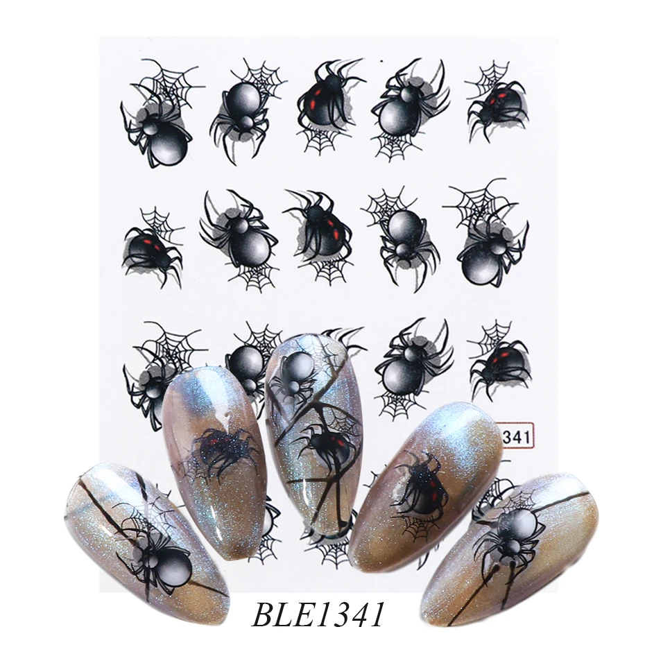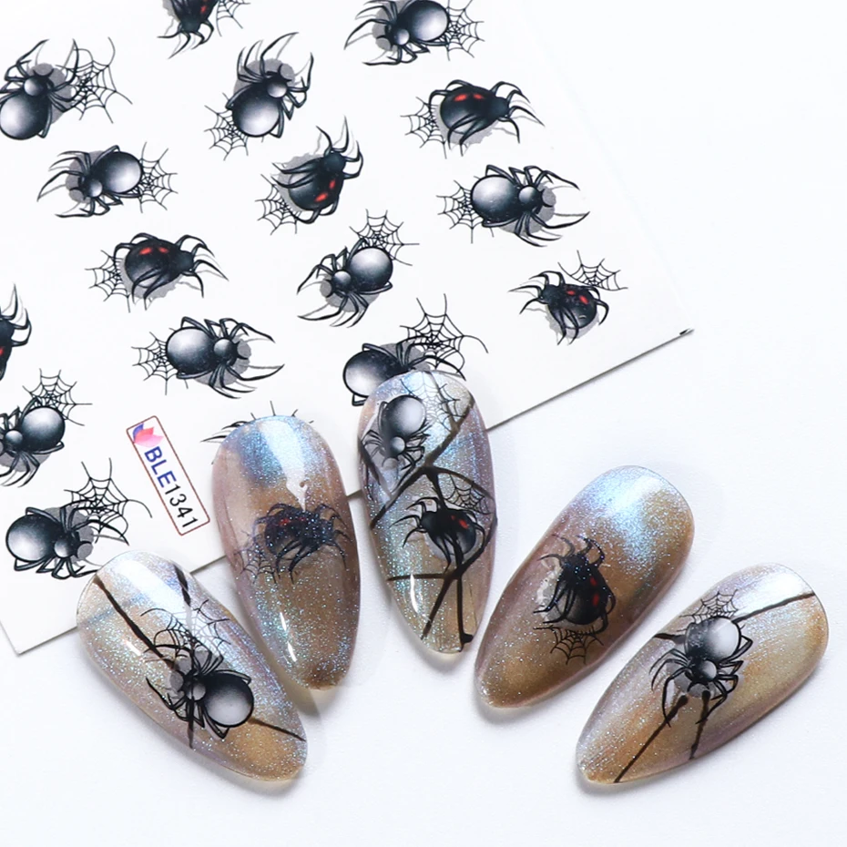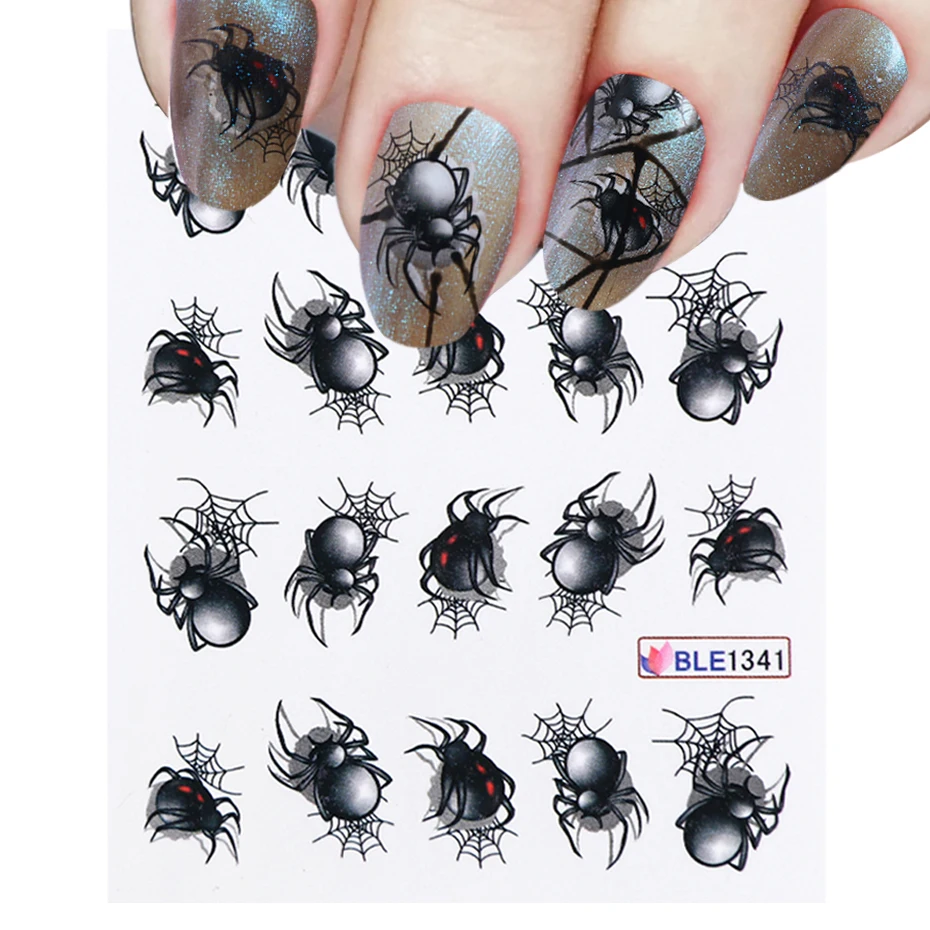 Переводные переводные наклейки для ногтей, 1 лист, дизайн в виде паука, наклейка на ногти водная, для водяной знак, маникюр CHBLE1341