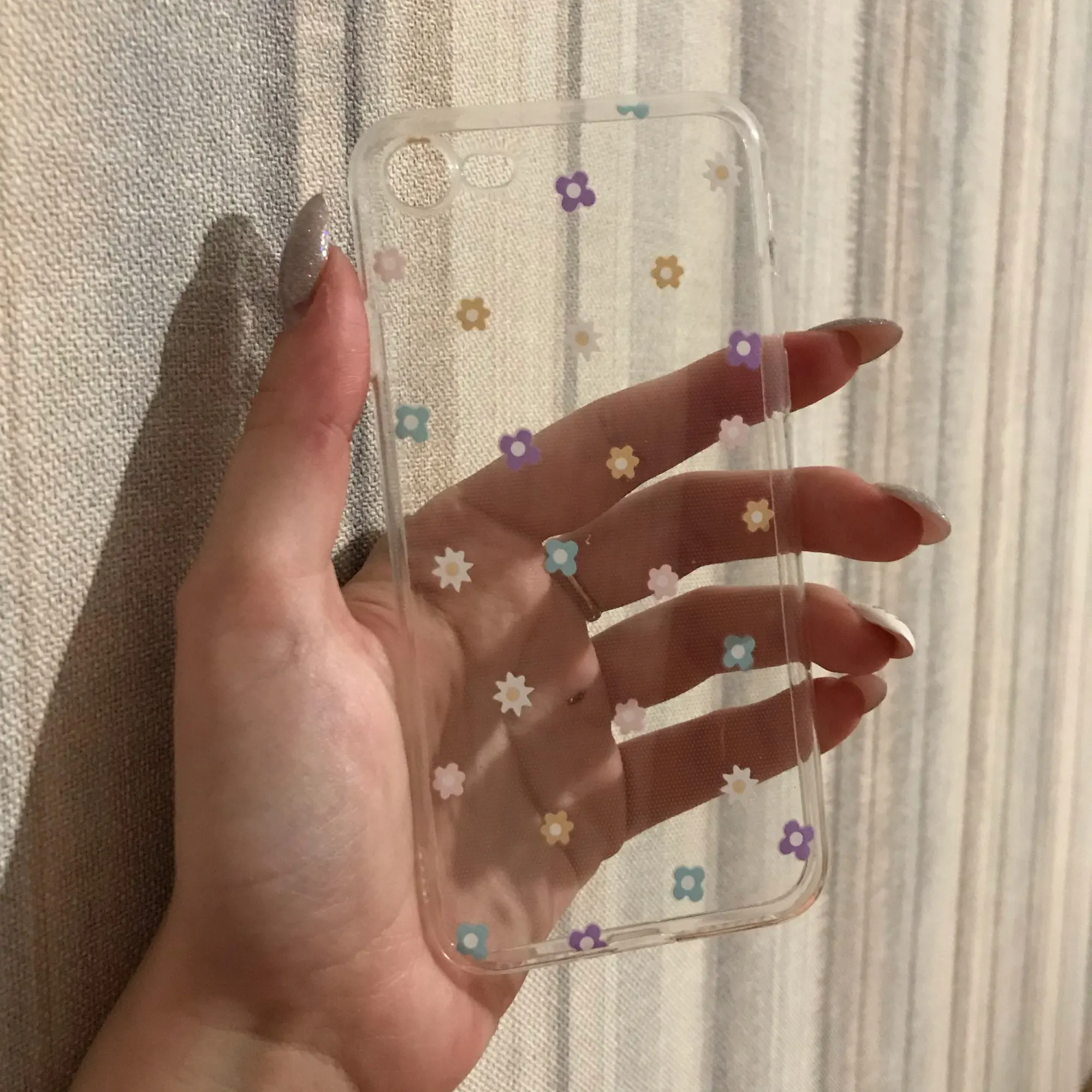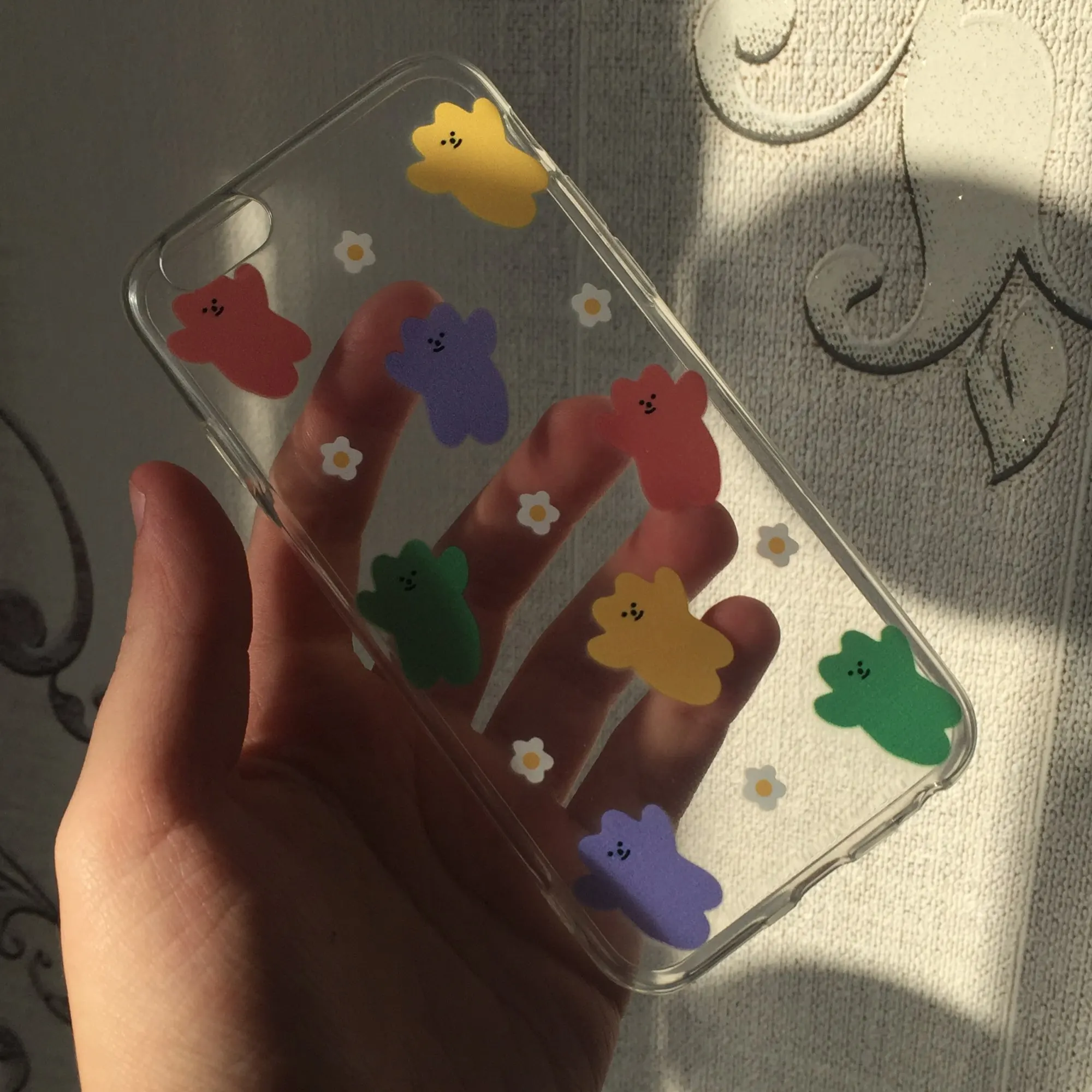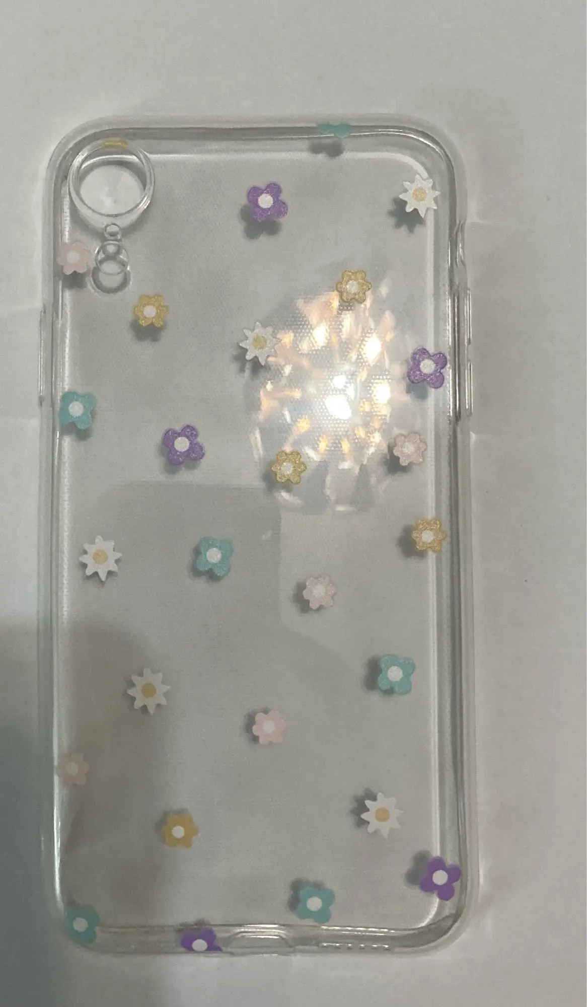 Цветочки отвалились и остались на руках ещё во время распаковки. Через несколько дней был просто силиконовый чехол.