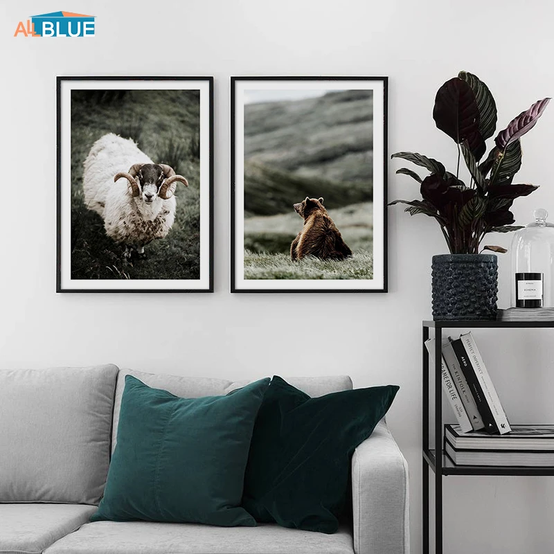 Highland корова овец постер с изображением медведя холст со скандинавскими мотивами с принтом животные пейзаж настенная живопись искусство настенные декоративные картинки для Гостиная домашний декор