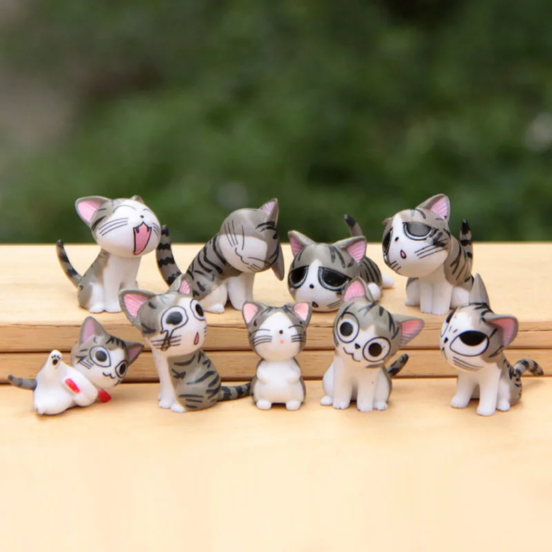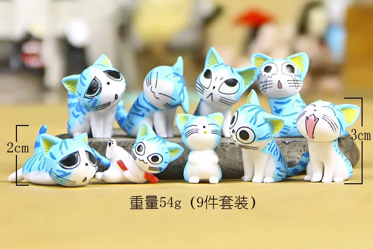Каваи 9 шт. чи Кошка маленькая фигурка 3 см микро пейзаж маленький чис милый котенок смайлик украшение ПВХ модель игрушки домашний декор