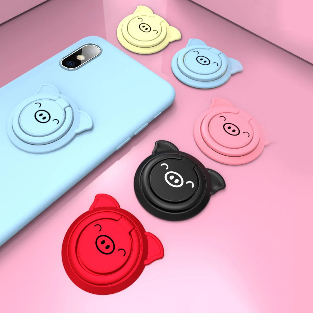 Металлическом ультра-тонком каблуке кольцо-держатель на палец для мобильного 360 Поворот магнит l-образного кронштейна настольная подставка с изображением милой свинки для мальчиков встроенный железный лист для мобильный телефон