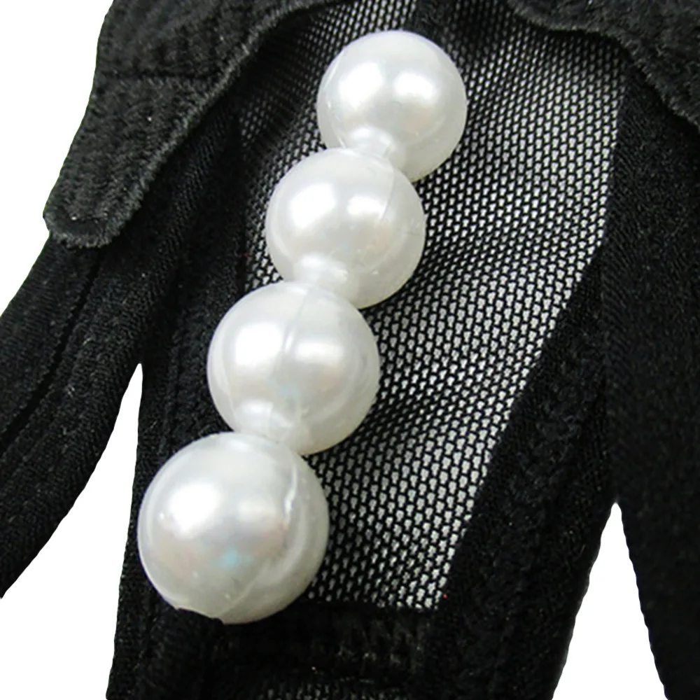 Стринги женские кружевные с вырезами и искусственным жемчугом