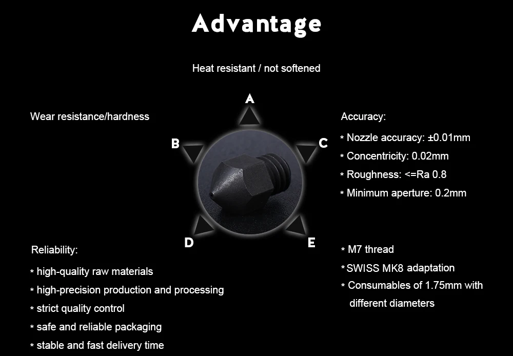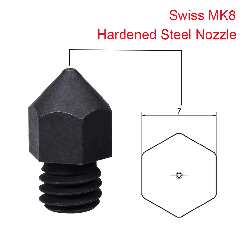 Швейцарская сопла MK8 из закаленной стали 0,20,40,60,8 мм 1,75 мм Филамент для экструдера MK8 Hotend детали для 3D-принтера Ender 3 CR10 блок