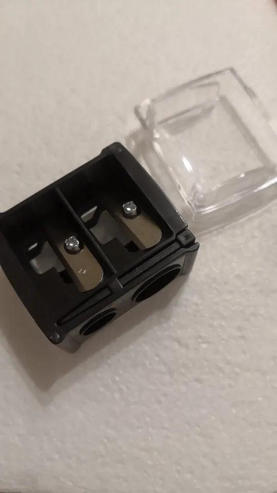хорошая точилка! с двух сторон защищена прозрачными экранами, что бы стружка вываливались, советую.