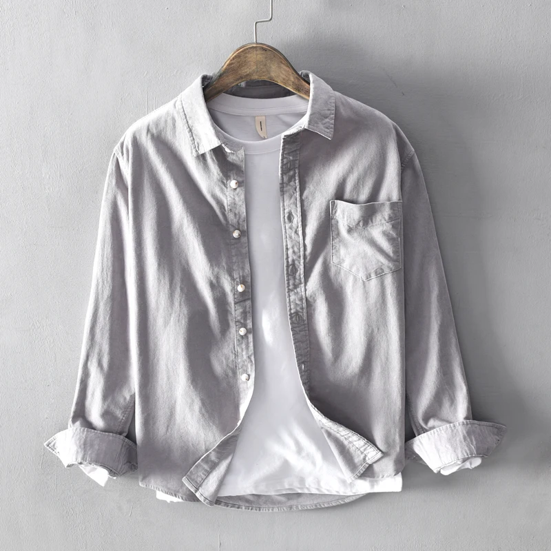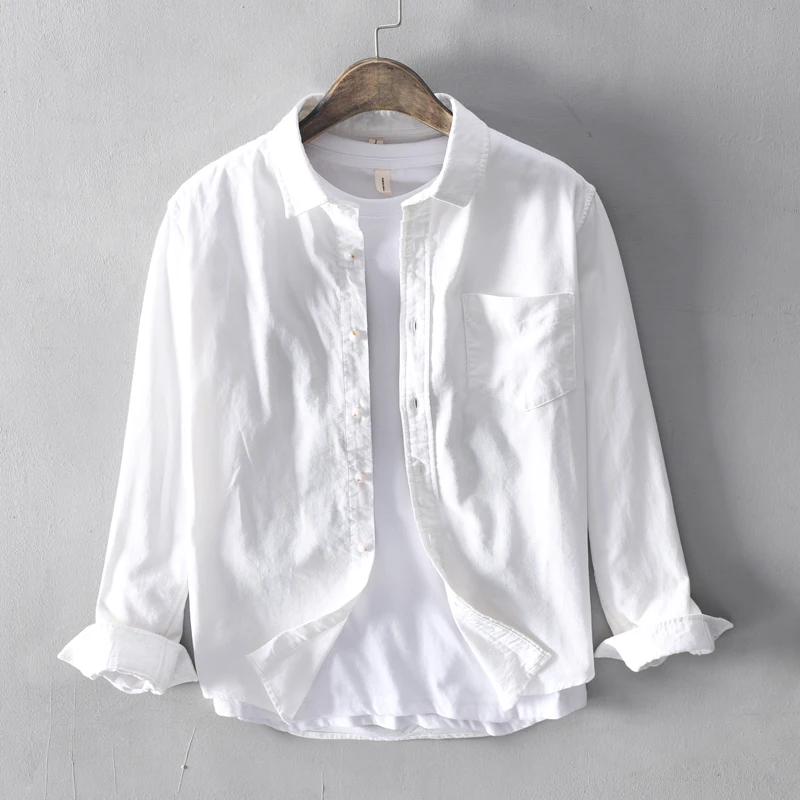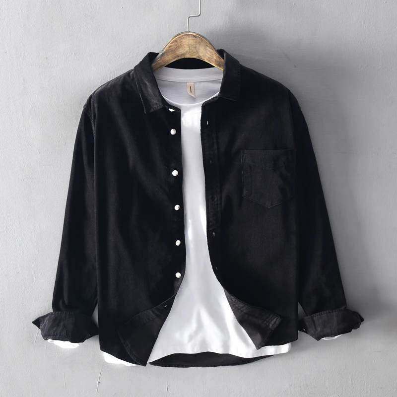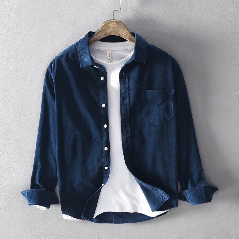 Мужская хлопковая рубашка, повседневная Однотонная рубашка с длинным рукавом, осень-весна