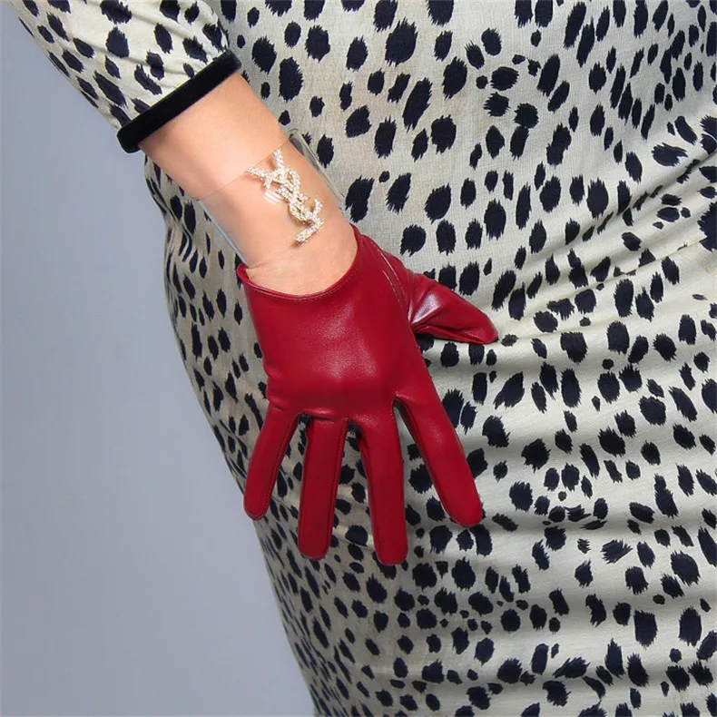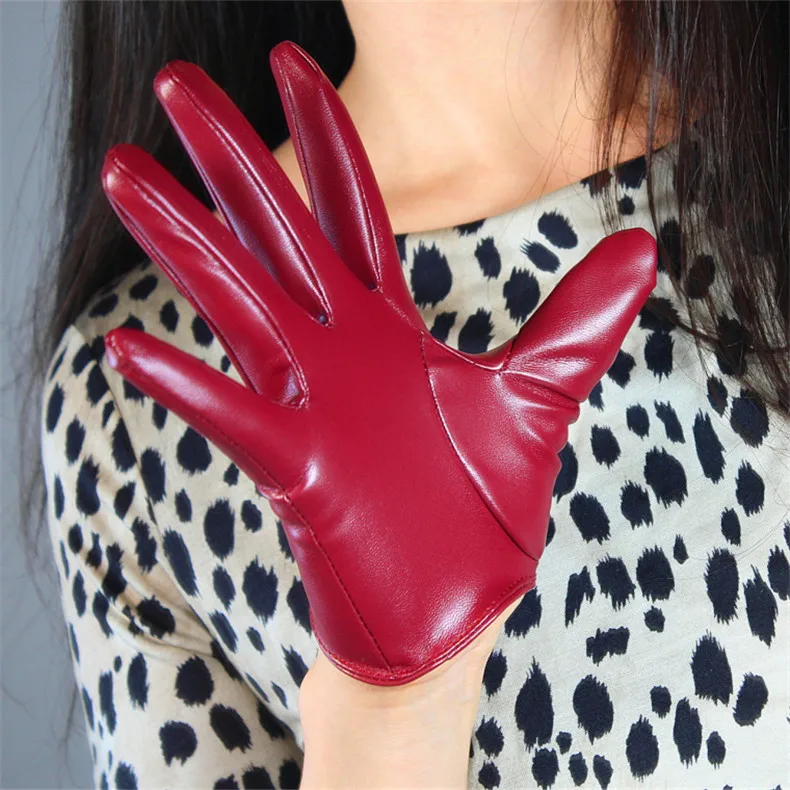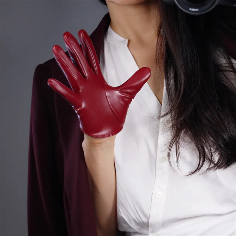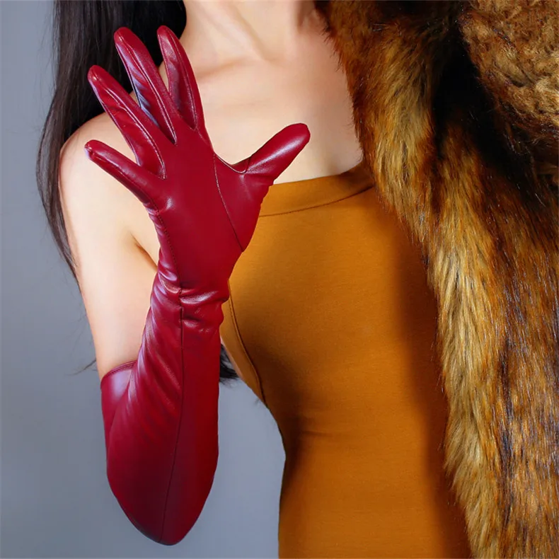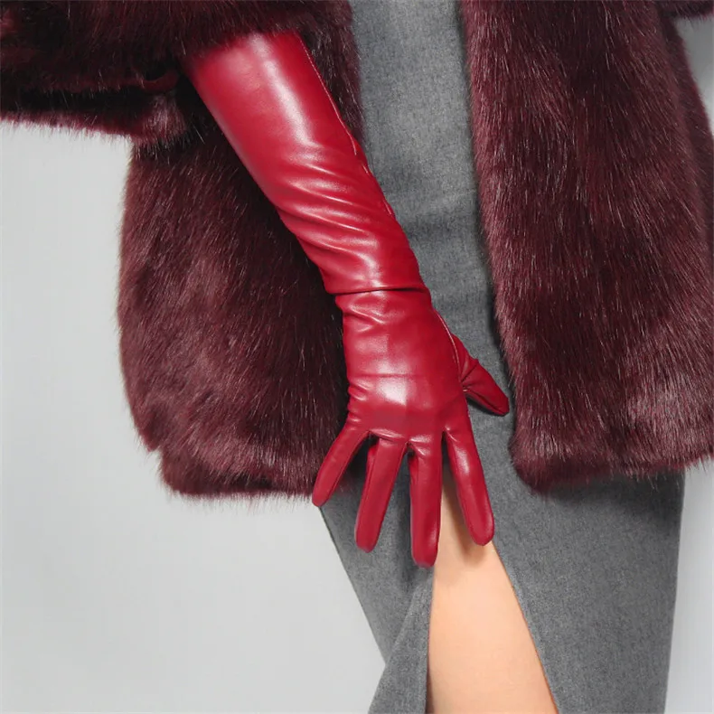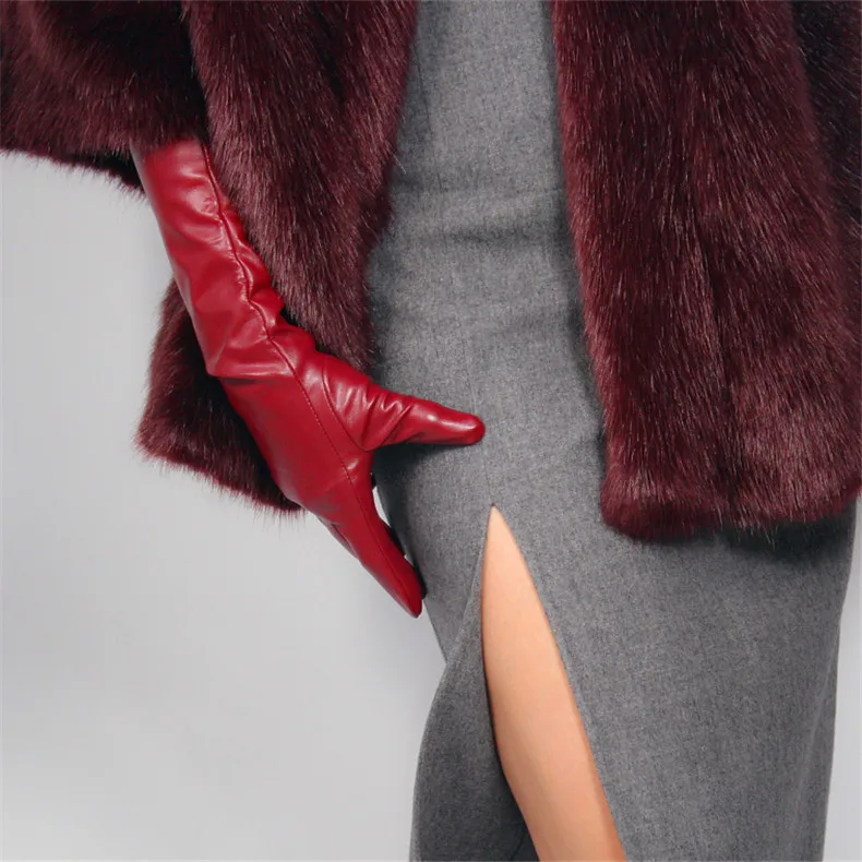 Удлиненные кожаные перчатки 70 см, из искусственной кожи с искусственной овчиной, темно-красного цвета, WPU128
