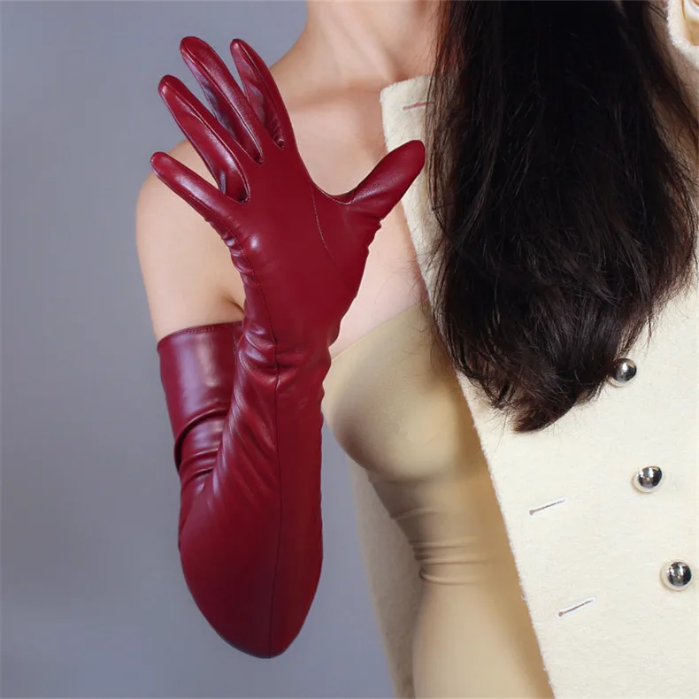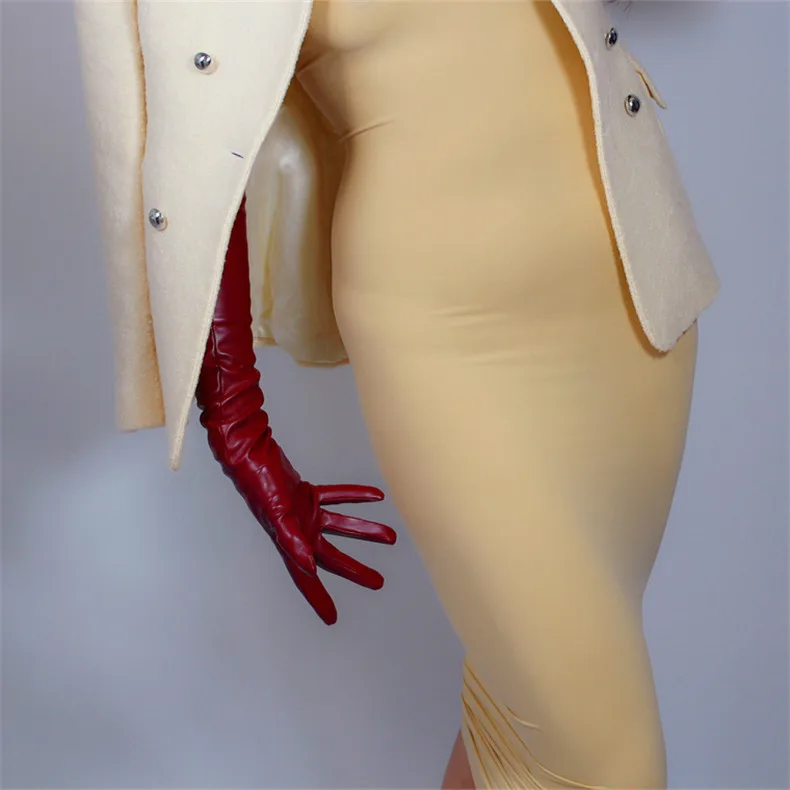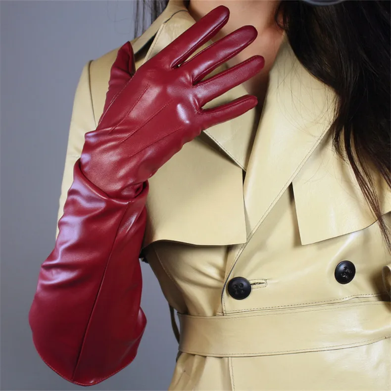 Удлиненные кожаные перчатки 70 см, искусственная кожа, Искусственная овчина, цвет темно-бордовый, красный, WPU128