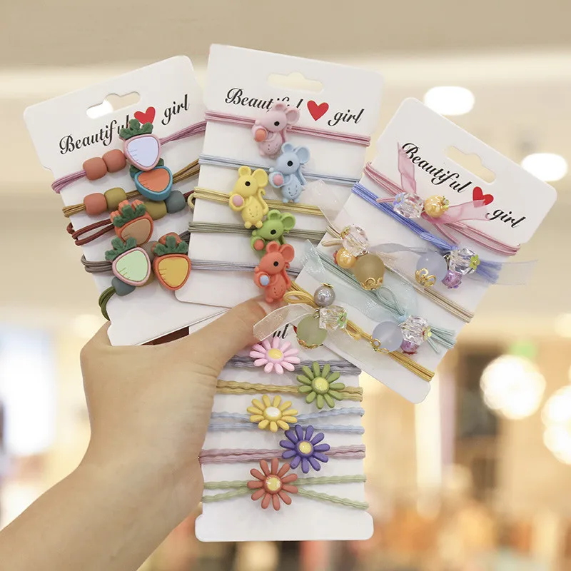 5 шт.компл. мультфильм Животные с цветочным узором для детей; резинка для волос, обтянутая тканью; резиновые ленты аксессуары для девочек атласным галстуком-бабочкой волос Веревка-держатель