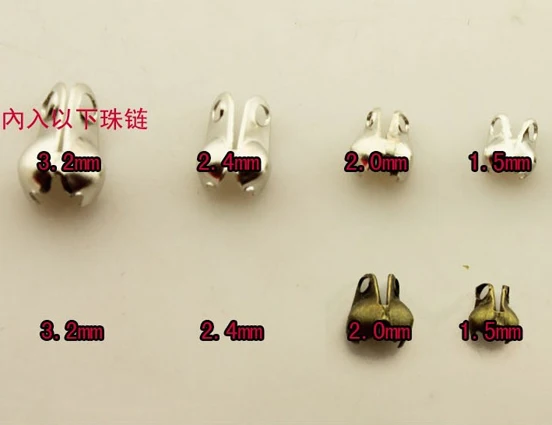 200 шт 1,5 2,4 3,2 мм серебро золото медь калитки щипцы Бусины Подходят шаровая цепь застежки разъемы для DIY ювелирных изделий