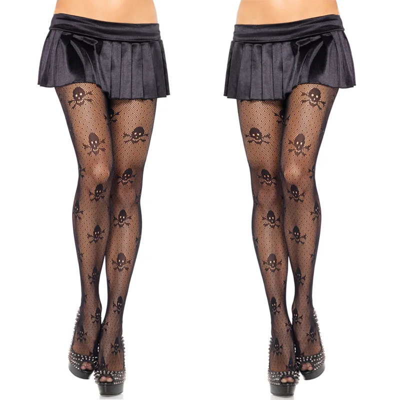 Модные колготки для женщин пикантные череп чулки в сетку для ночных...