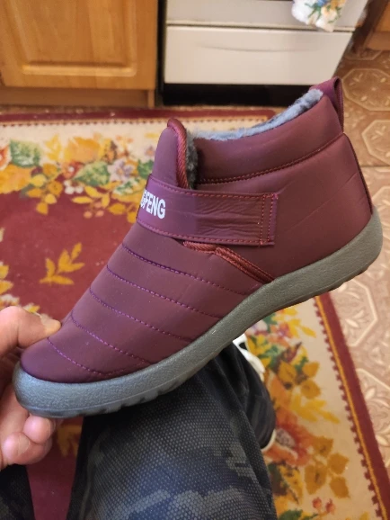 Это моя четвёртая пара..знакомые видят насколько они удобные..и просят,что бы я заказала их...удобные,теплые ,мягкие..взяла на размер 25,5..отлично подошли.язычек с липучкой очень удобно обувать ботиночки.В предыдущую теплую зиму..носила не снимая..Внутри искусственный мех..сам верх водооталкивающий,подошва резиновая.не промокают ноги будут в сухости.. Доставка очень быстрая немного больше двух недель..Рекомендую товар и магазин
