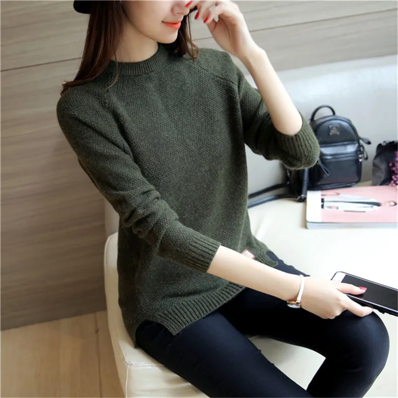 Женский короткий вязаный пуловер, повседневный Однотонный свитер с длинным рукавом, модель W1629 на осень и зиму, 2021