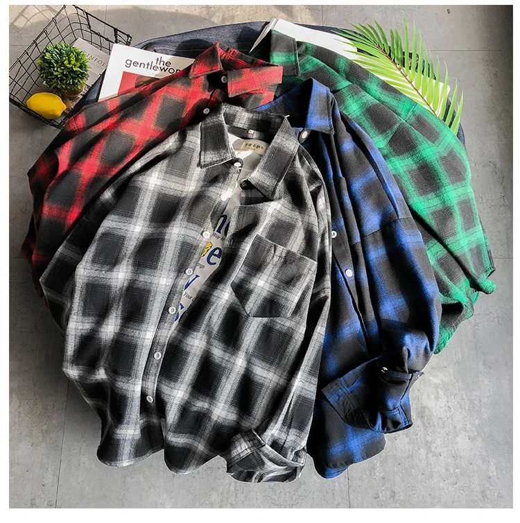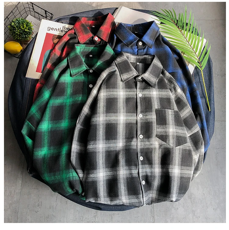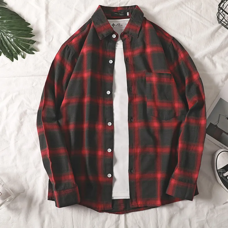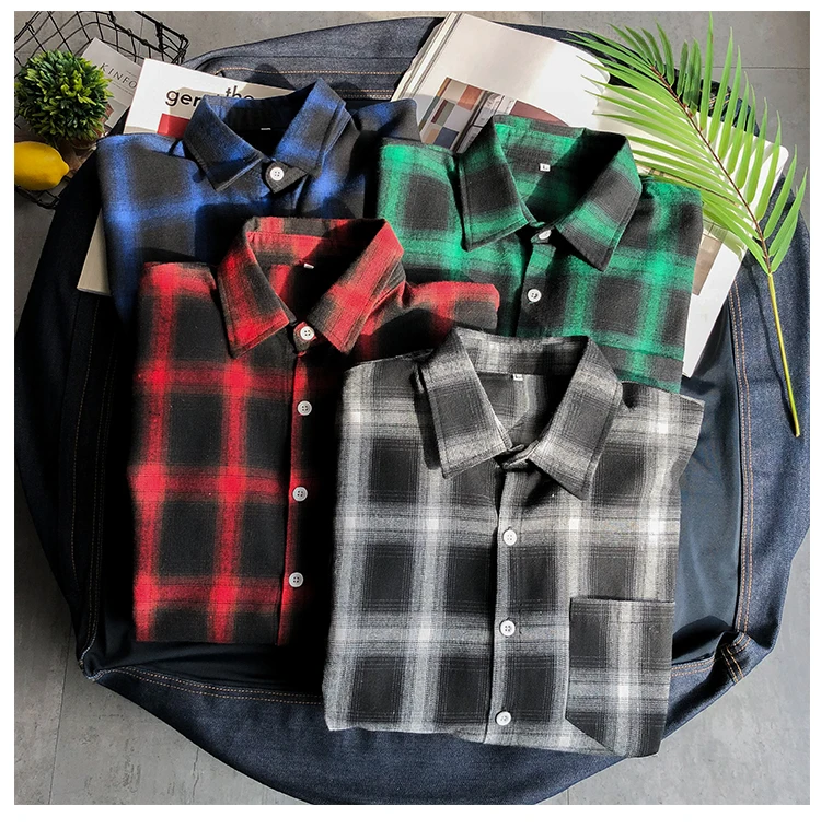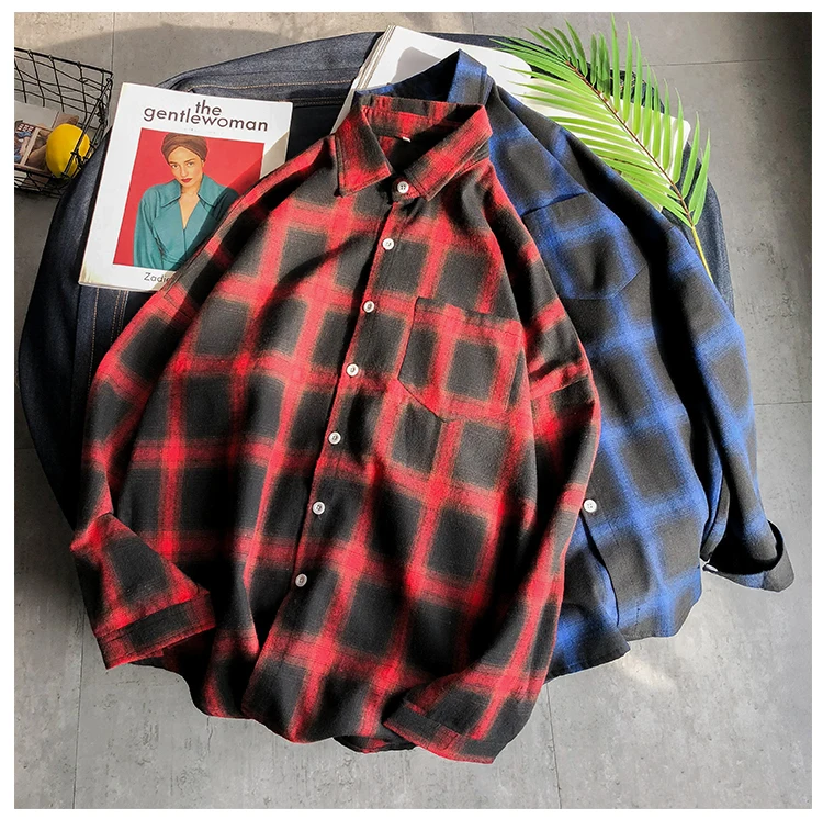 Мужская рубашка в клетку, белая, красная, черная рубашка с длинным рукавом, в стиле INS, верхняя рубашка большого размера d, 2020