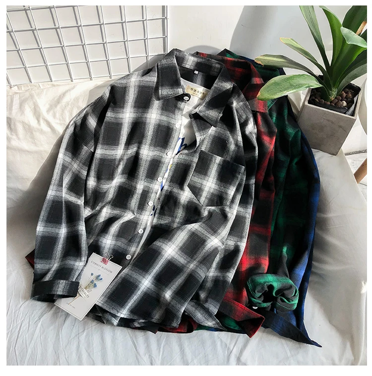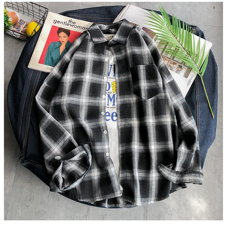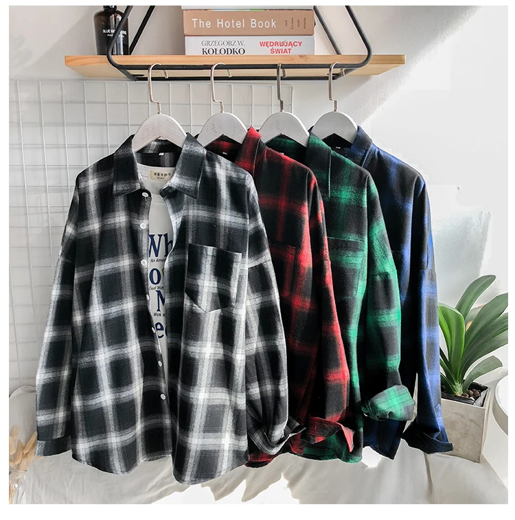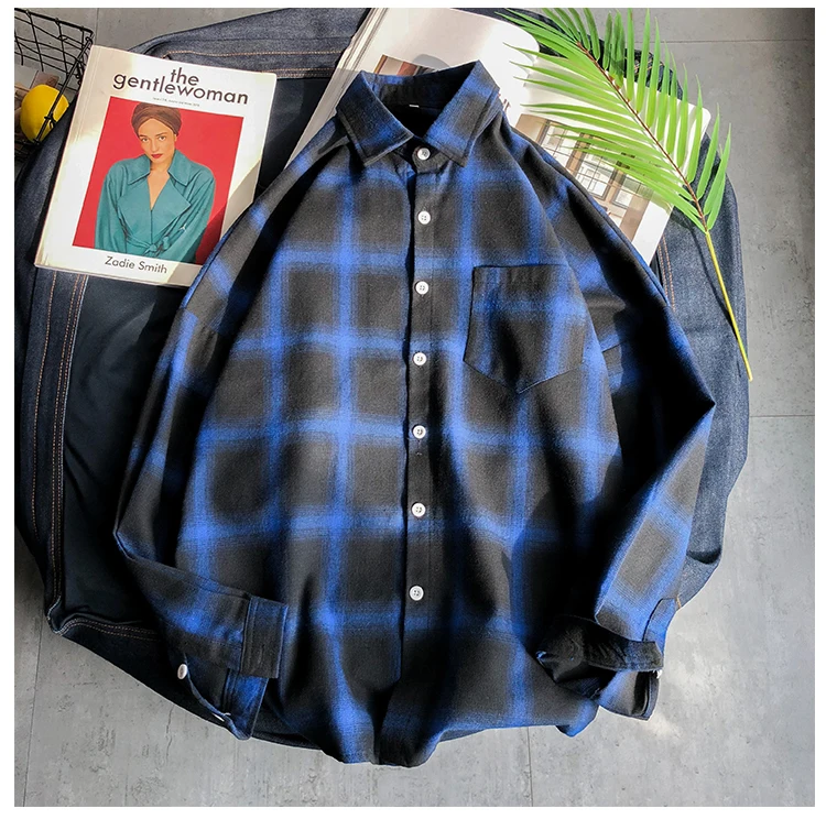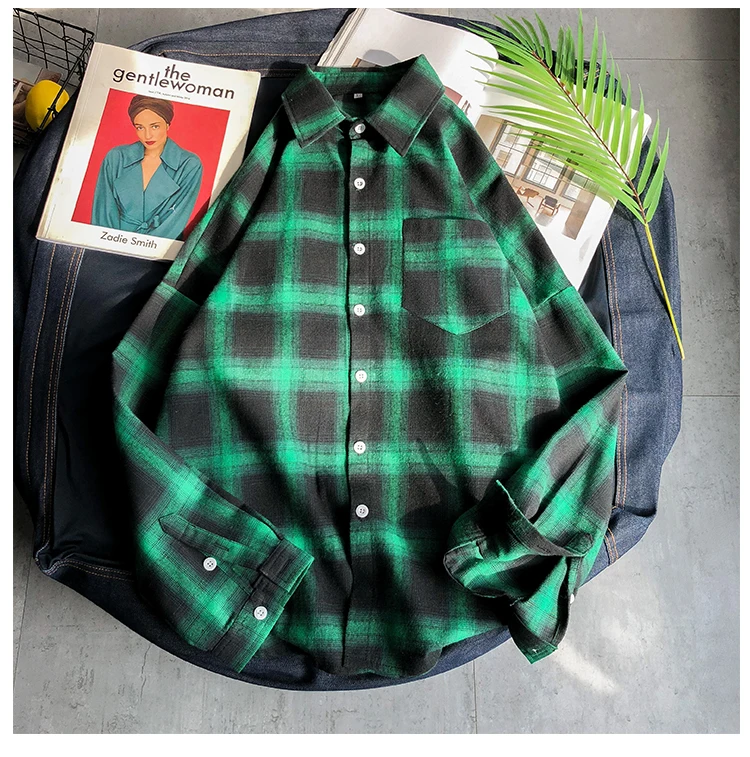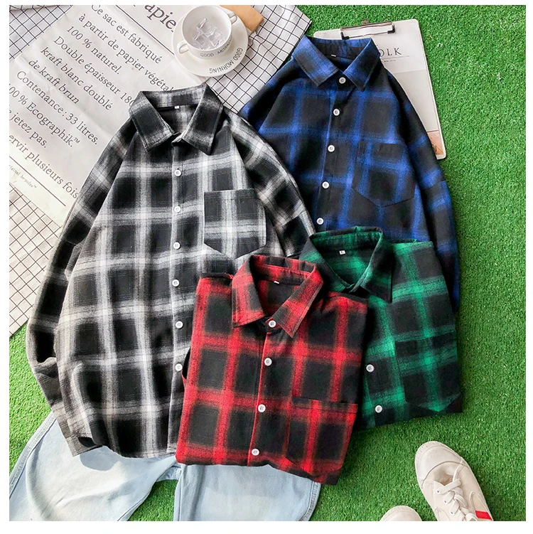 Мужская рубашка в клетку, белая, красная, черная рубашка с длинным рукавом, в стиле INS, верхняя рубашка большого размера d, 2020