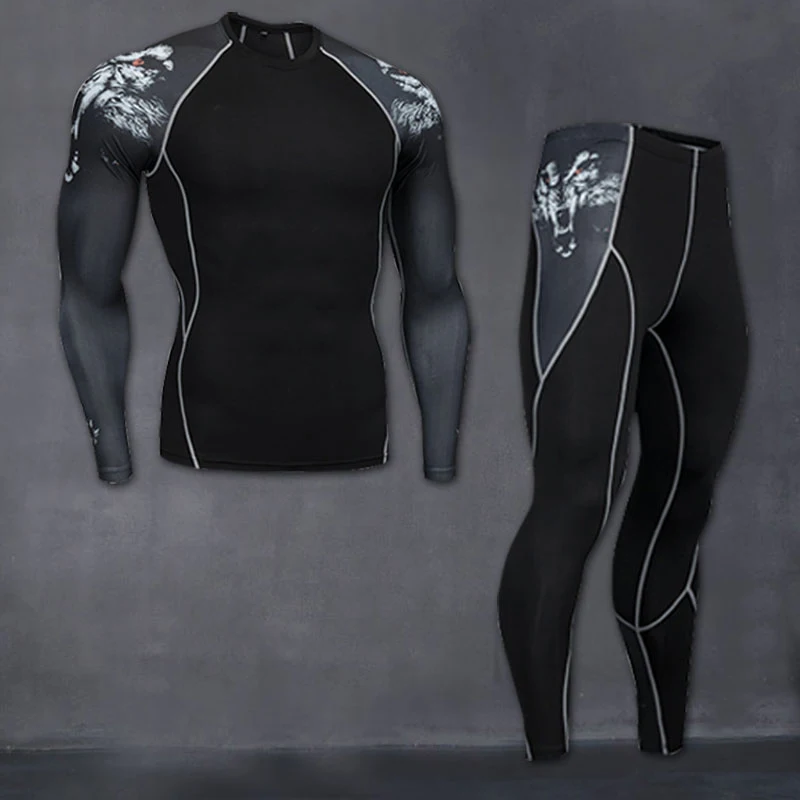 Компрессионные Мужские спортивные костюмы, быстросохнущие комплекты...
