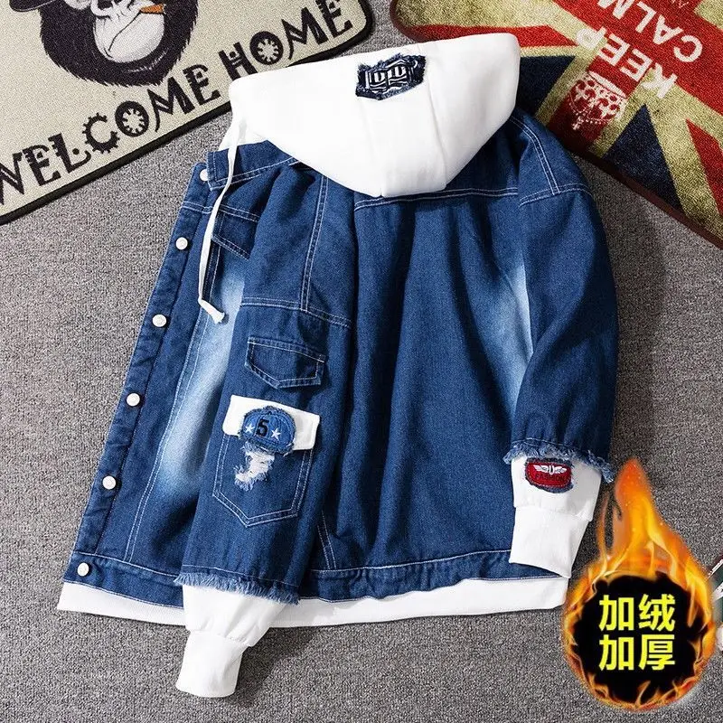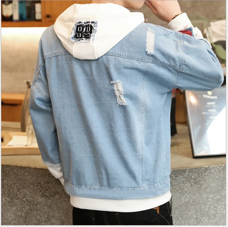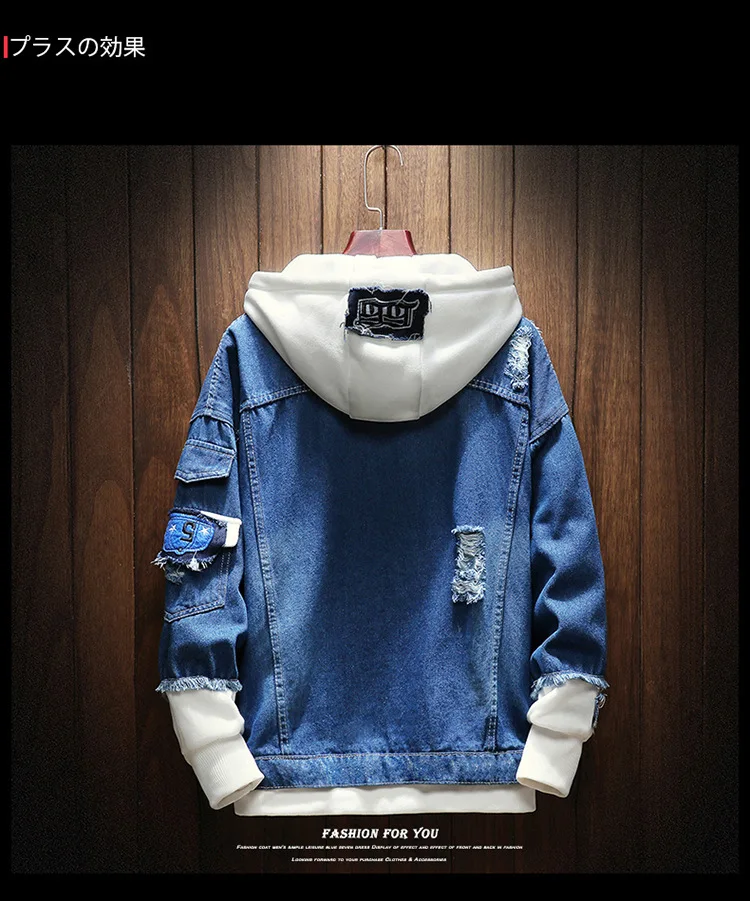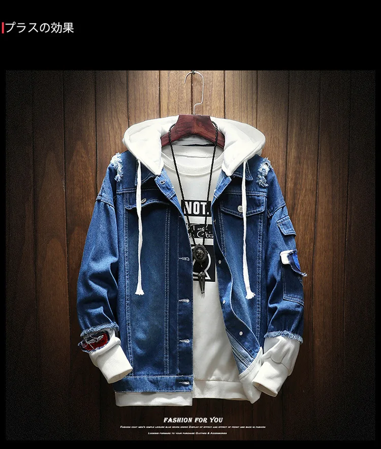 Куртка мужская джинсовая с капюшоном, Уличная Повседневная куртка-бомбер из денима в стиле хип-хоп, модное пальто в стиле ретро, осень