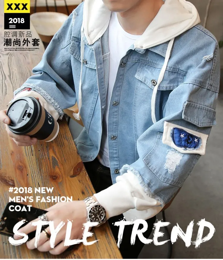 Куртка мужская джинсовая с капюшоном, уличная одежда в стиле хип-хо...