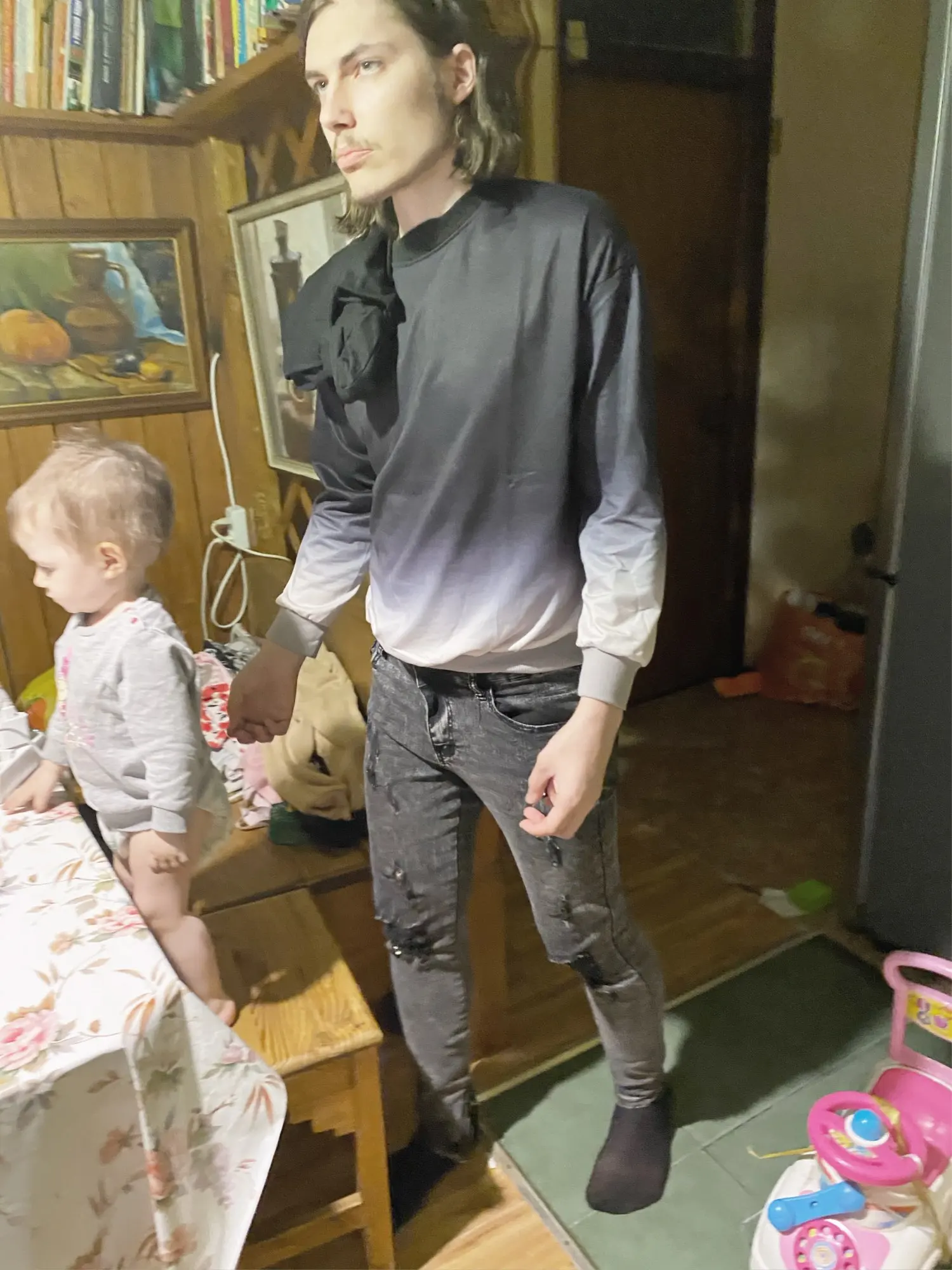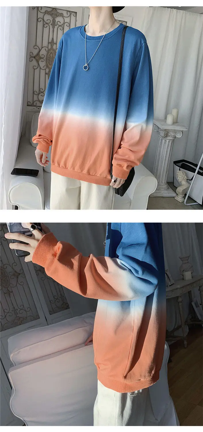 Мужская толстовка, с круглым вырезом и градиентной окраской, на осень и зиму, 2020