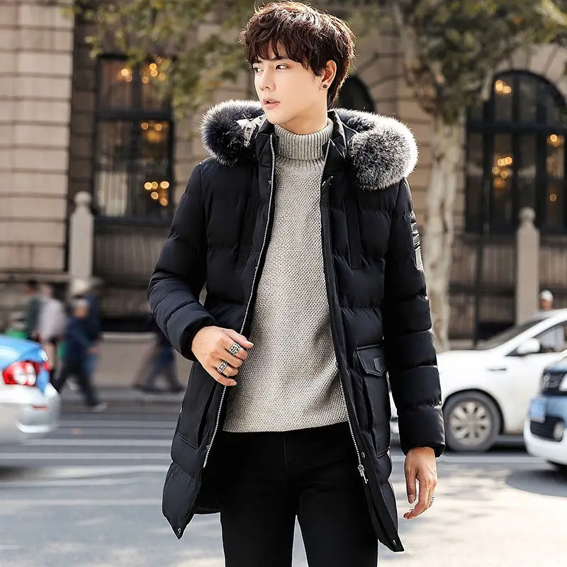 Зимняя Корейская версия, Мужская одежда, длинная мужская теплая оде...