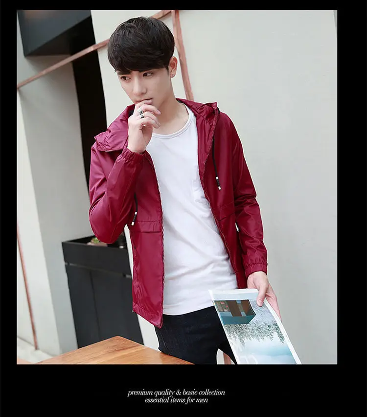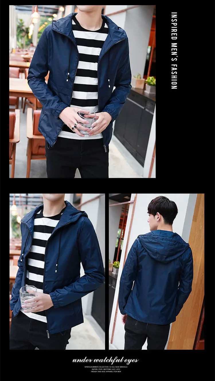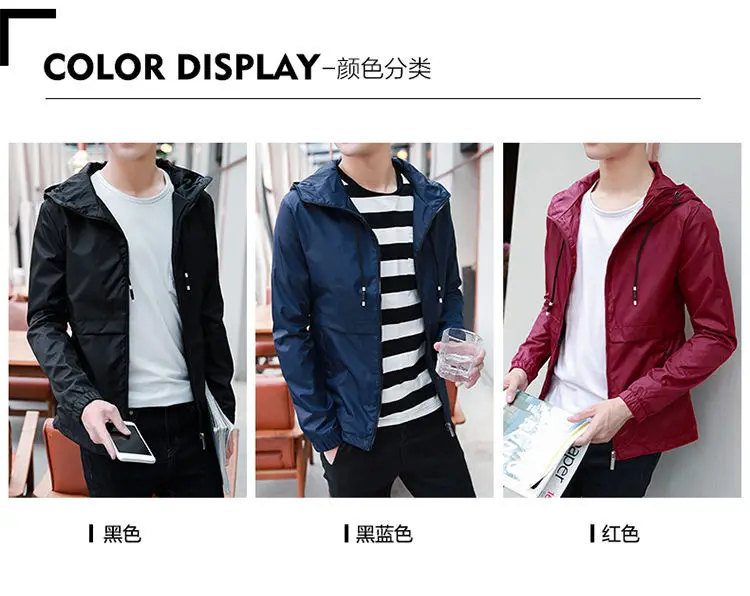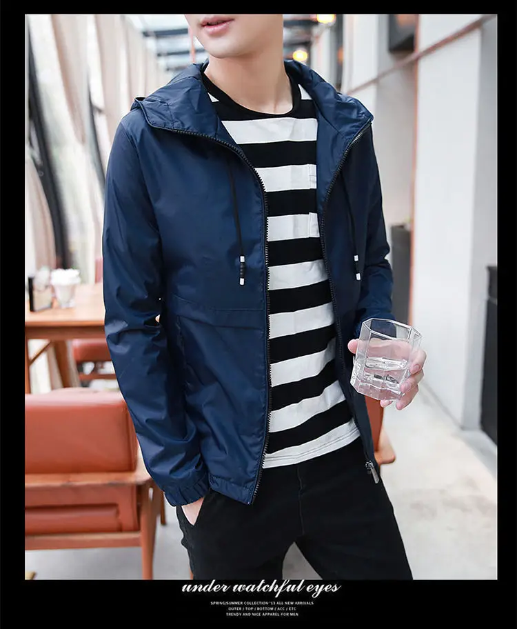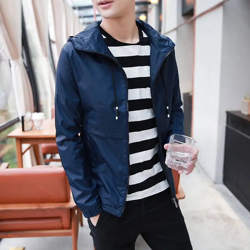 Ветровка мужская с капюшоном, тонкая повседневная спортивная куртка...