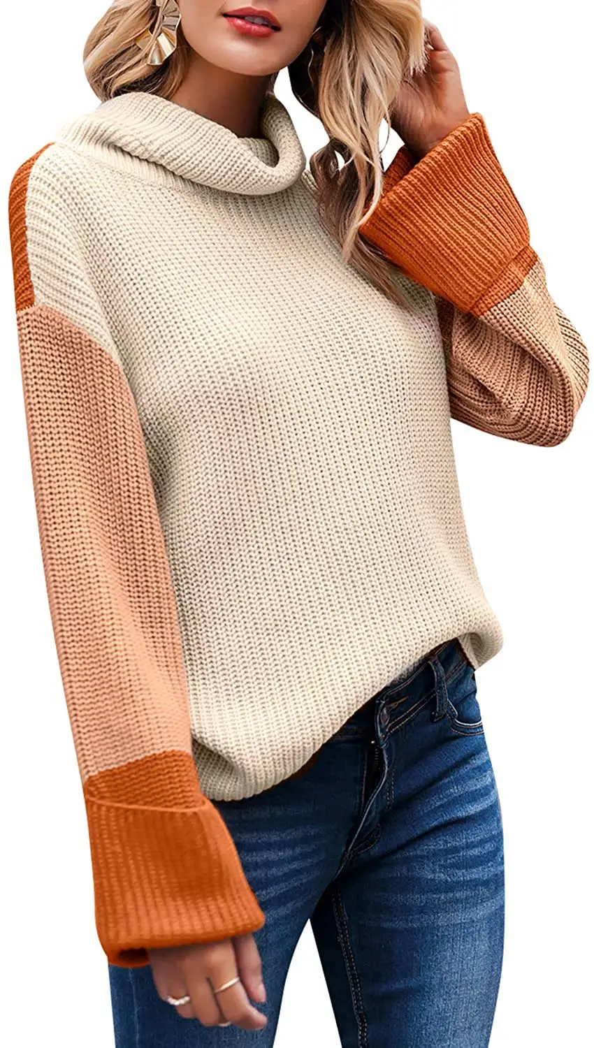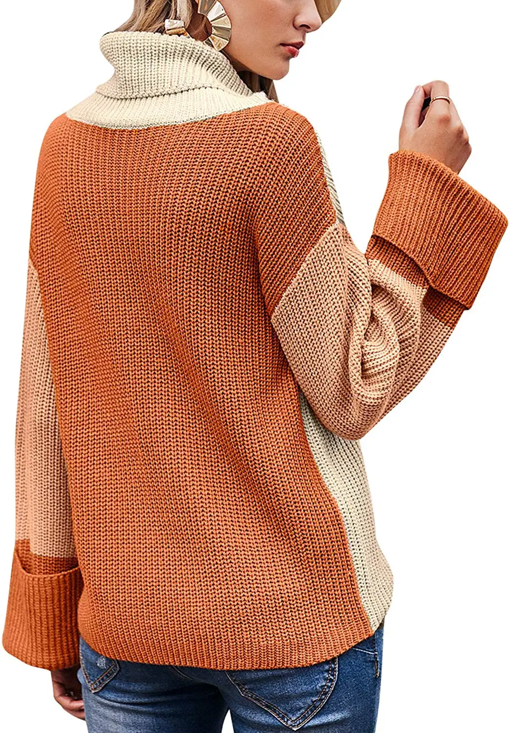 Водолазка, пуловер, свитер, Женский цветной свитер, повседневный теплый вязаный пуловер с длинным рукавом, топы, свободный объемный вязаный свитер, джемпер