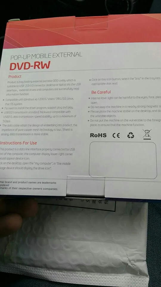 Работает хорошо. Я купил его, чтобы заменить и старый дорогой LG. На данный момент я только протестировал копирование файлов с DVD, CDs на жесткий диск, и он работает хорошо. Упаковка ок.