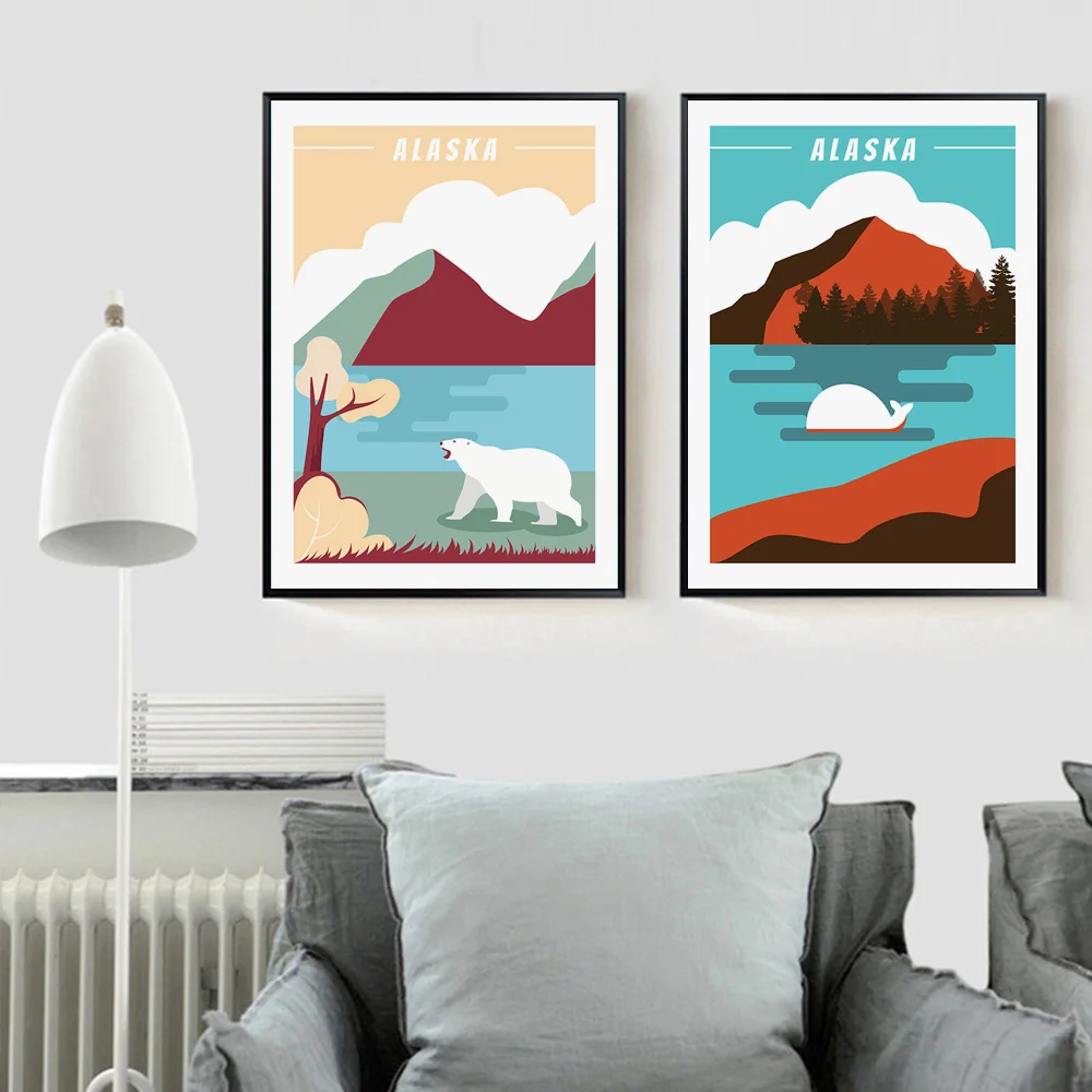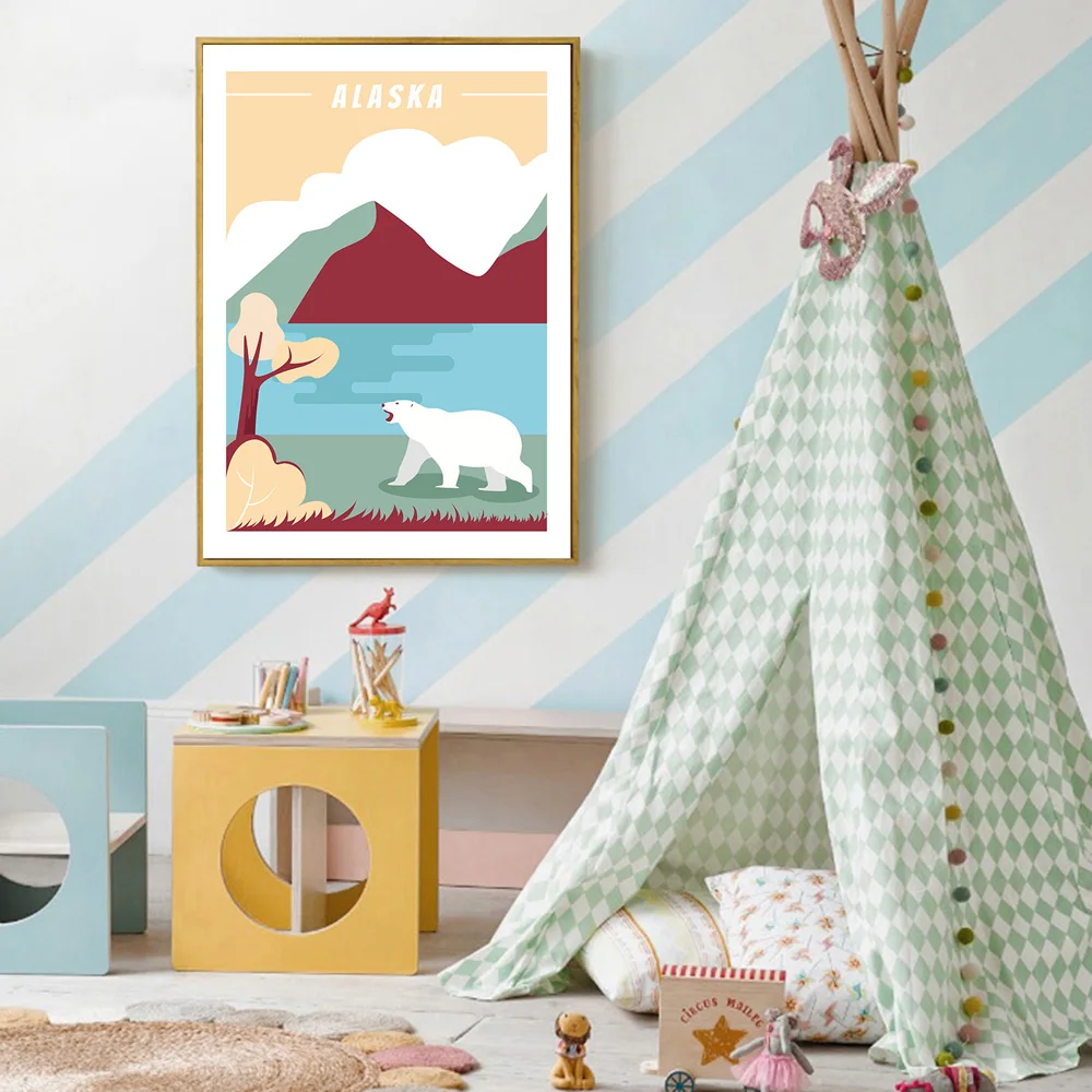 Абстрактный пейзаж, медведь, дерево, горы, скандинавские плакаты и принты, настенная живопись на холсте, настенные картины для декора гостиной